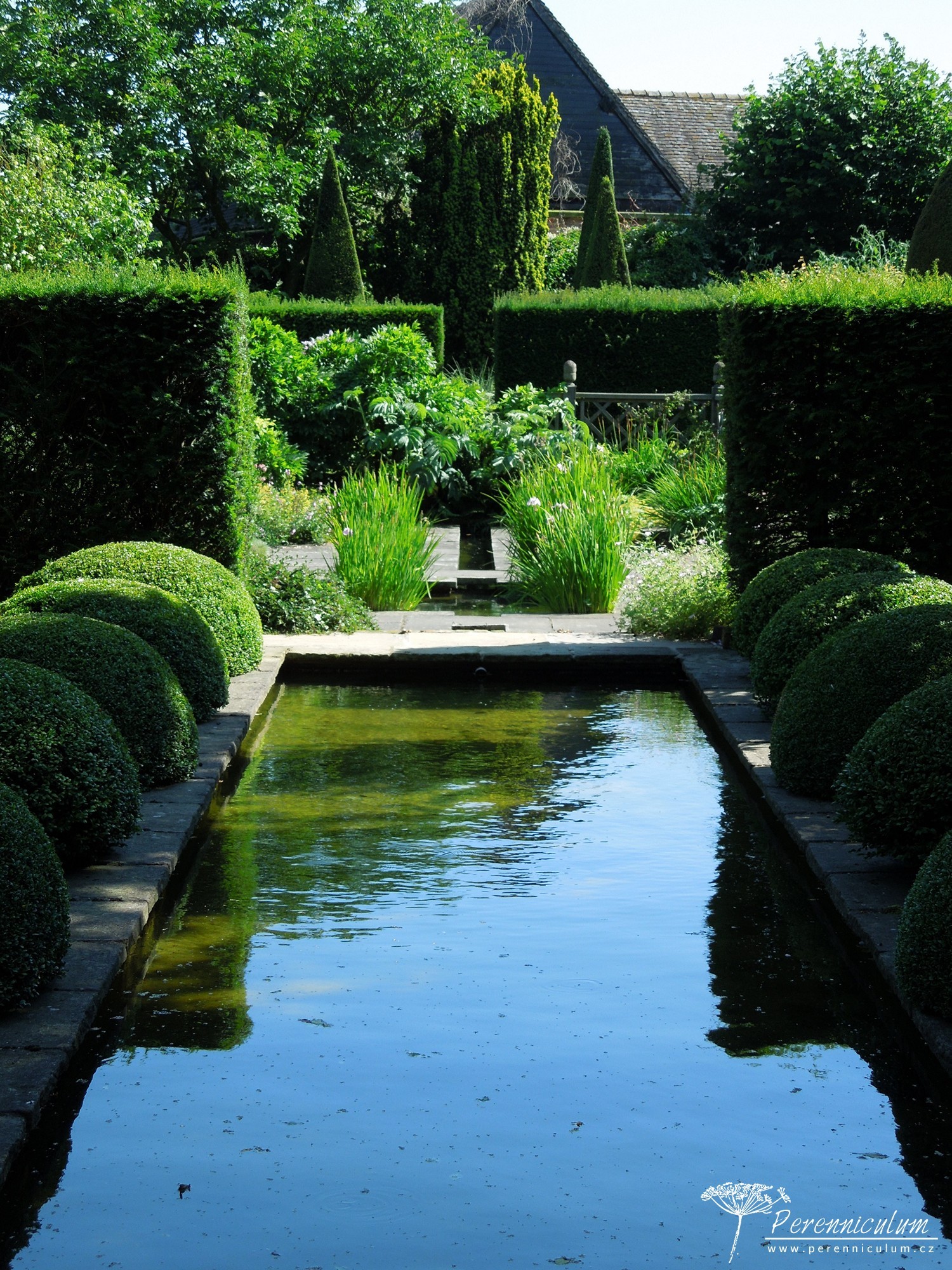 The Rill Garden (Zahrada s potůčkem) - úzký rovný kanál s tekoucí vodou lemují terakotové květináče s tulipány na jaře a hortenziemi po zbytek roku. Po celý rok drží její charakter střihané stálezelené polokoule z tisu.