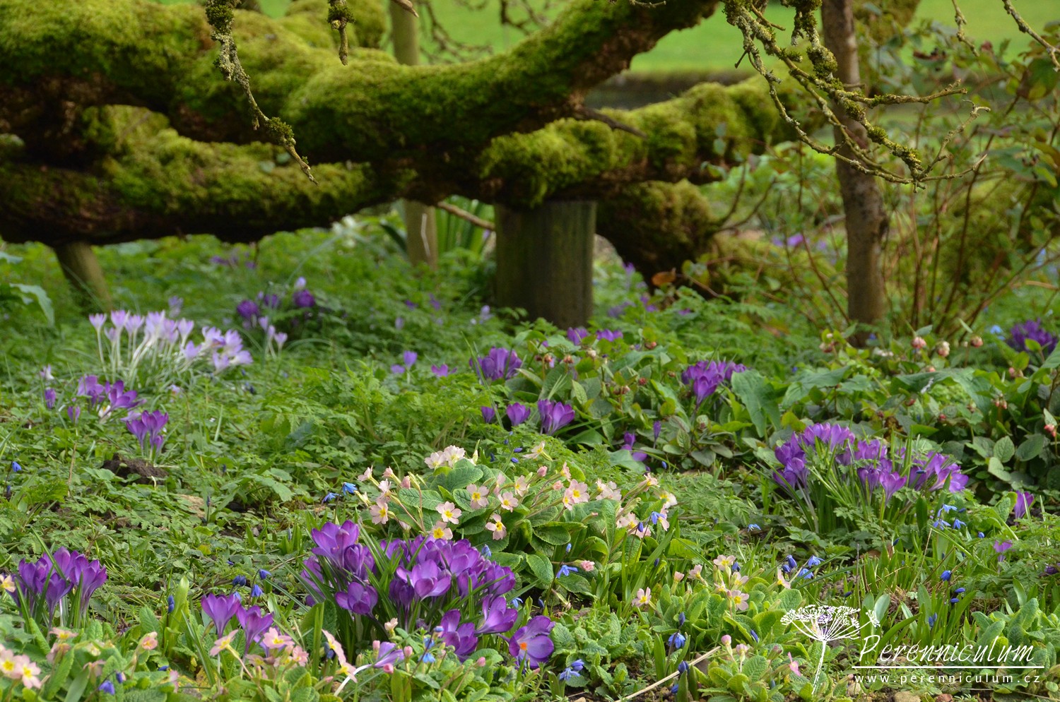 Nemohla jsem si nechat ujít ani jarní anglickou zahradu, The Courts (už jsem o ní psala zde >>). Sice jsem nestihla velkolepé lány kvetoucích Crocus tommasinianus, ale zase už kvetly modřence (Muscari), dokvétaly čemeřice (Helleborus), plicníky (Pulmonaria), sasanky (Anemone blanda) prvosenky (Primula vulgaris) nebo z keřů meruzalka krvavá (Ribes sanguineum).
