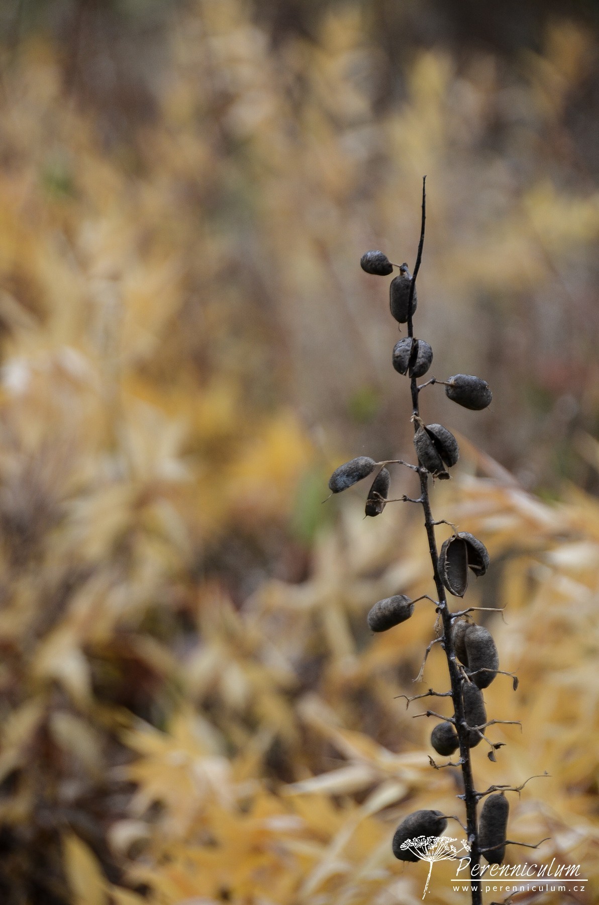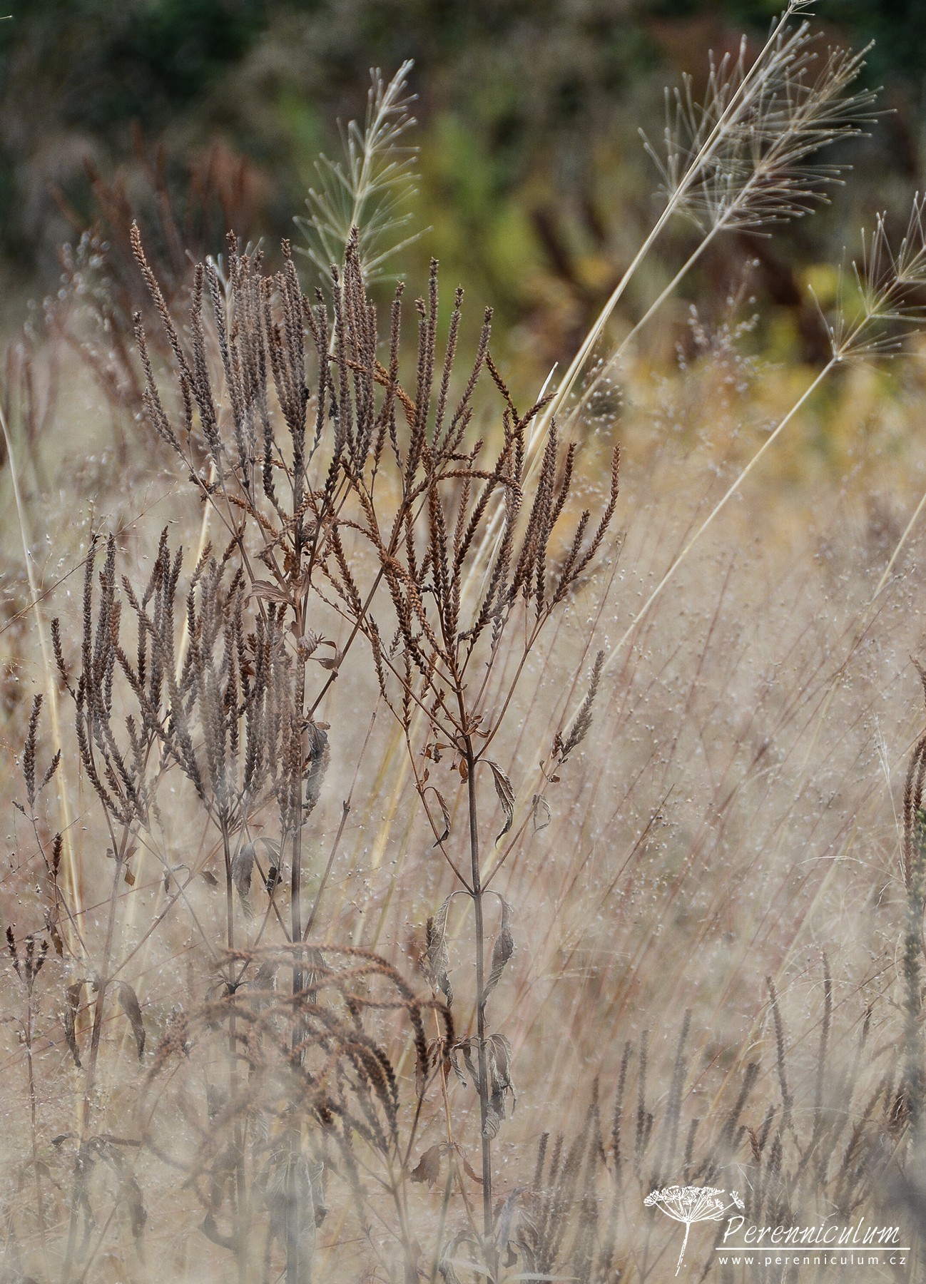 V pření části domu pak široké záhony okupuje pestré spektrum trvalek, jejichž určení dalo zabrat i naší skupině složené z odborníků napříč zahradnickým oborem. V tuto roční dobu (polovina října) už většina trvalek odumírá, usychá, hnědne... Ale právě tohle období Oudolf vyzdvihuje: "Hnědá je také barva", tvrdí. V průběhu podzimu a zimy Oudolf doporučuje sledovat struktury a textury trvalek.Musím mu dát zapravdu, vážně bylo, na co se koukat. Není hnědá jako hnědá, různé odstíny od zlatavých trav, přes výrazně zbarvené listy Amsonie až po téměř černá květenství vysoké štíhlé Agastache nepetoides. Přidejte mystickou mlhu a ranní rosu a máte tisíc objektů k focení.