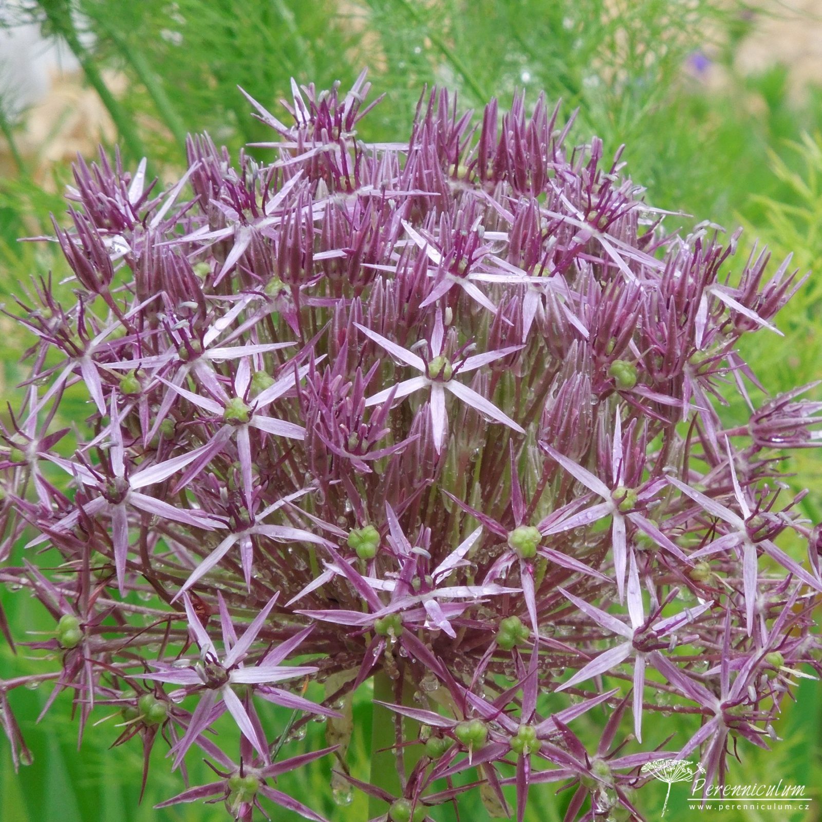 Česnek ozdobný (někdy také česnek Christophův) dosahuje výšky jen okolo 50 cm. U báze vyrůstají listy, které jsou zpočátku ochlupené, později lysé. Na koncích neolistěných stonků je vždy jedno velké kulaté květenství, které dosahuje v průměru 20 cm. Skládá se až z 200 poměrně velkých (4 cm) hvězdicovitých květů na dlouhých stopkách. Květy jsou růžovofialové a mají jakýsi metalický lesk. Kvete obvykle v červnu. V době kvetení již začínají žloutnout a zatahovat listy, které jsou v průběhu jara svěže zelené. Allium cristophii je jedním z nejlepších okrasných česneků pro sušení.