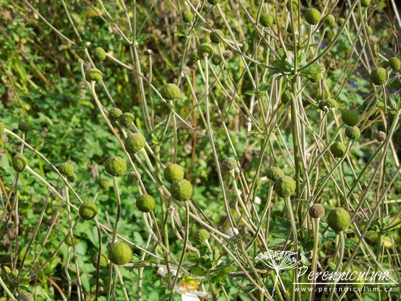 Jedná se o velmi vitální, bujně rostoucí trvalku s výraznými trojlaločnatými, tmavě zelenými listy s jemnými, bílými chloupky na spodní straně (znak zděděný po Anemone vitifolia). Vzpřímený dlouhý tenký stonek se na vrcholu krátce větví a nese až 20 sterilních květů. Květy měří běžně až 8 cm v průměru a jsou složené ze 6 až 15 okvětních plátků v odstínech od bílé do sytě růžové.