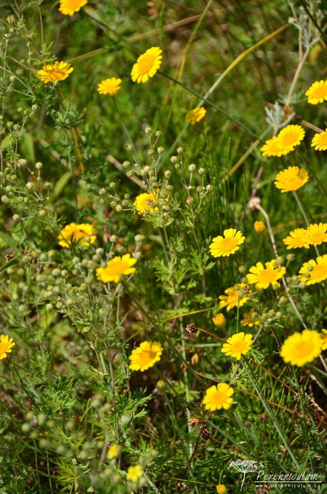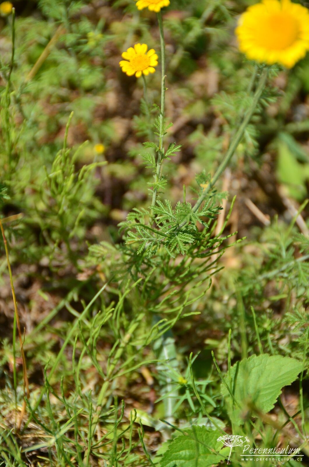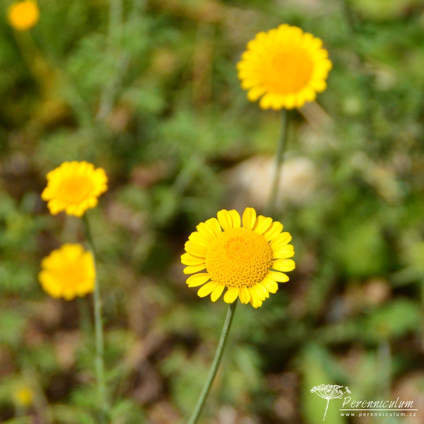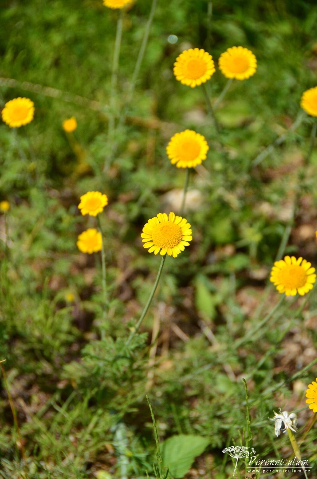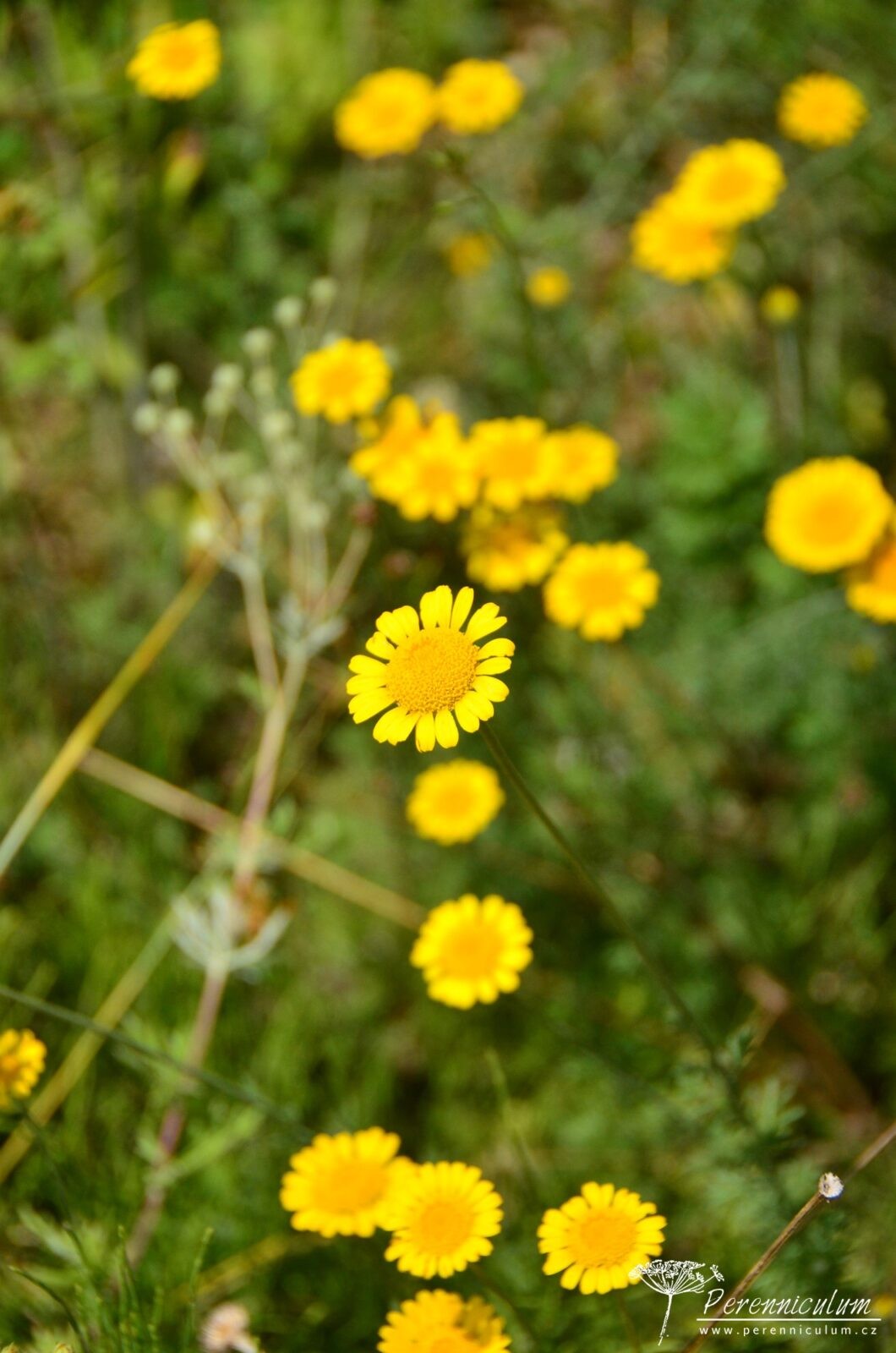 Anthemis tinctoria má domovinu v téměř celé Evropě, na východ zasahuje až na Kavkaz a druhotně je také v Severní Americe. V ČR se vyskytuje na celém území kromě vysokých hor. Roste především na suchých výslunných stráních, pastvinách, slunných okrajích lesů a křovin a podél cest a železnic.