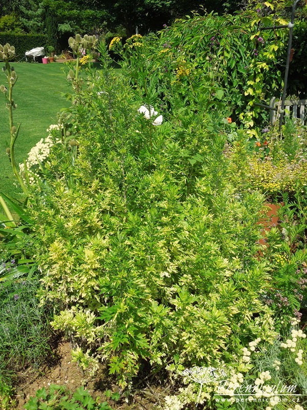 'Oriental Limelight' nebo také 'Janlim' vyniká nad ostatními kultivary svým pevným habitem, který se méně rozklesává a také se nerozrůstá tak agresivně jako příbuzné kultivary. Listy jsou jemně vykrajované, světle zelené s žlutým žíháním (mramorováním). Květy jsou drobné, sdružené do lat, ale nemají valnou okrasnou hodnotu. Pro nejlepší efekt lze rostlinu zmladit koncem června, což iniciuje nové obrůstání s pěkně zbarvenými listy.