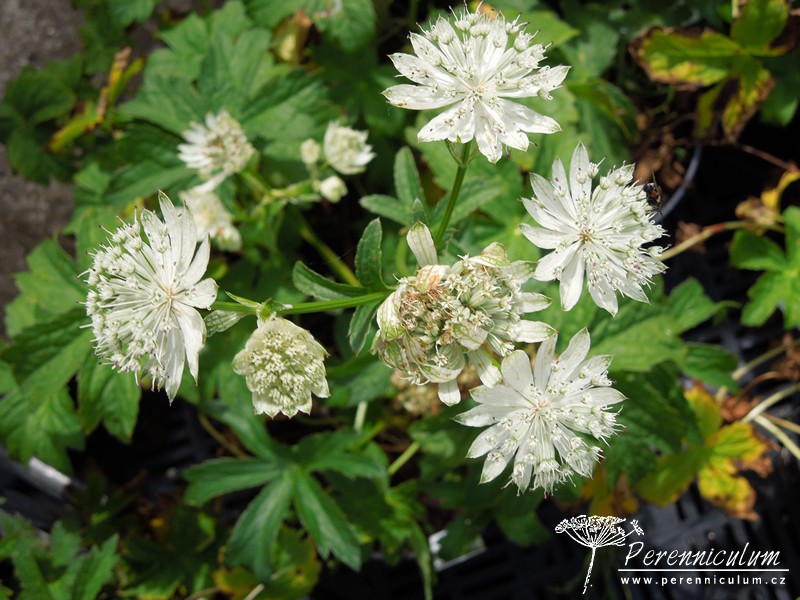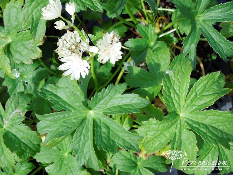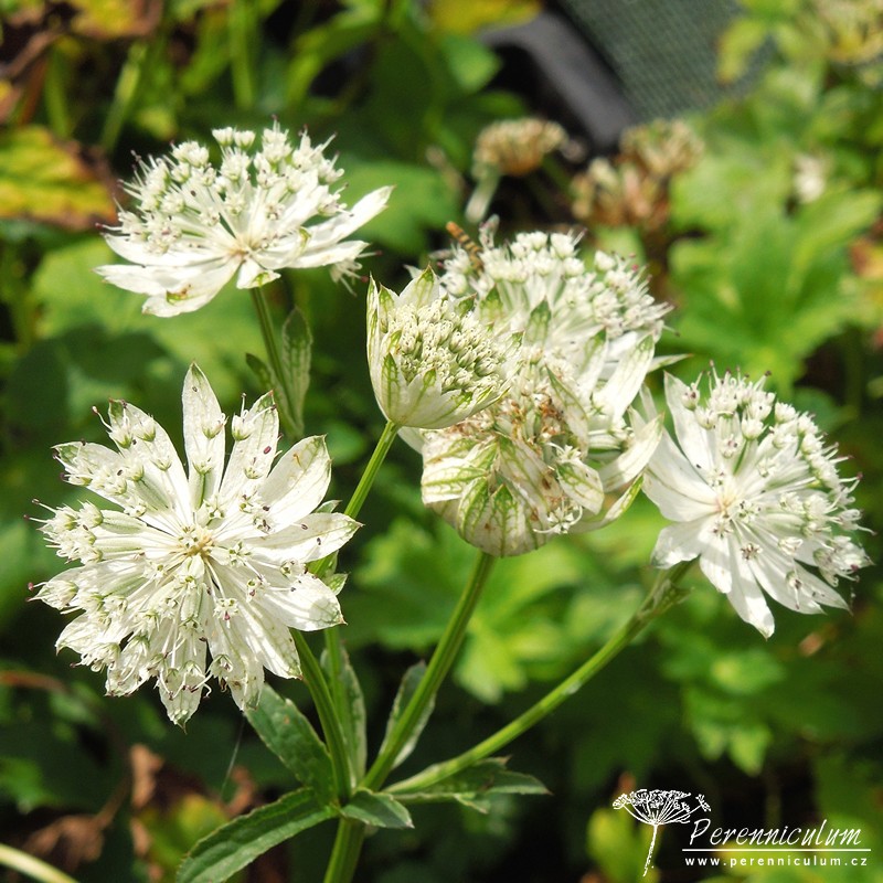 Květy Astrantia major jsou ve skutečnosti květenstvími - tzv. okolíky (čeleď miříkovité), které jsou zvýrazněny nápadnými listeny (tzv. brakteoly).