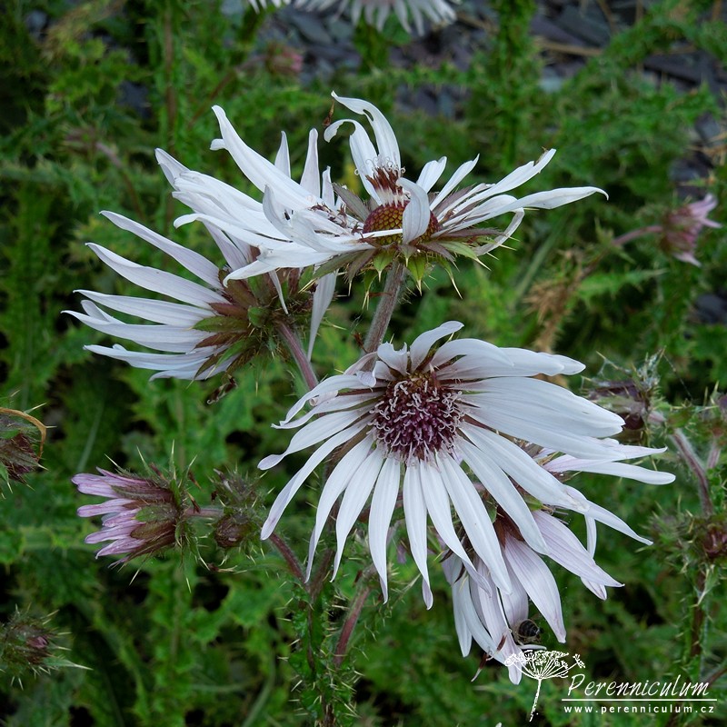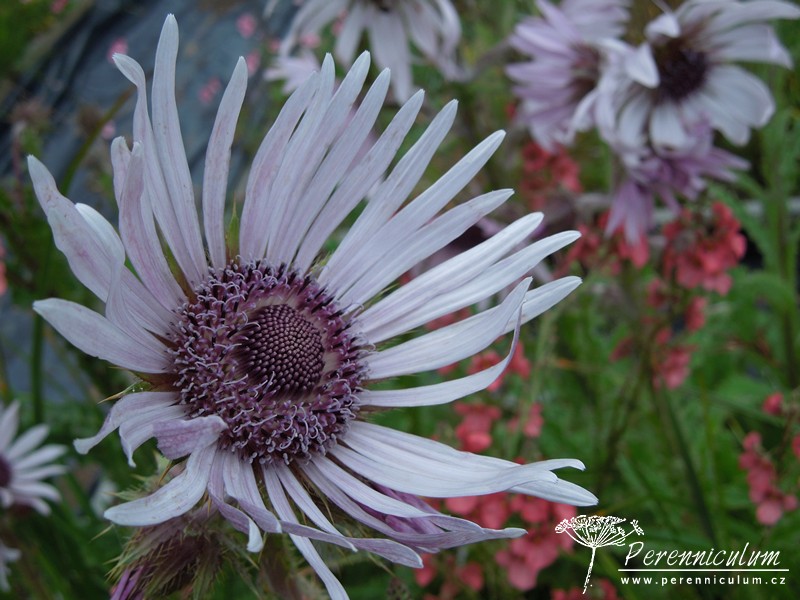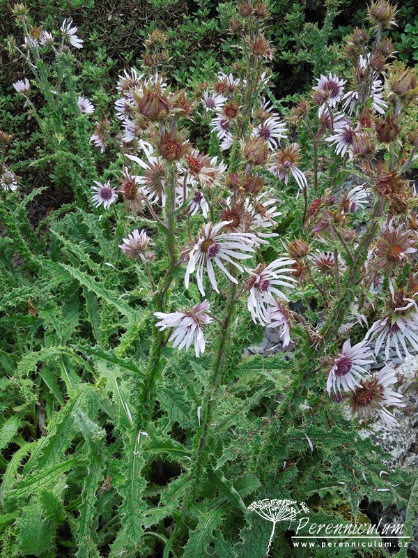 Berkheya purpurea pochází z jižní Afriky, kde obvykle roste na vlhčích, skalnatých, travnatých svazích v nadmořských výškách okolo 1800 - 2800 m. n. m. Trvalka vytváří přízemní růžici trnitých, zhruba 45 cm dlouhých, zelených listů. Listy bodlákovitého charakteru mají spodní stranu pokrytou hustou vrstvou bílých, jakoby bavlněných, chloupků. Z růžice listů vyrůstají trnité stonky nesoucí menší listy a u vrcholu se větví - nesou více květů. Květy jsou úbory složené ze světle fialových či narůžovělých (v některých klimatech až bílých) jazykovitých květů (paprsek) a temně fialových trubkovitých květů (terč). Květy mají v průměru asi 8 cm.