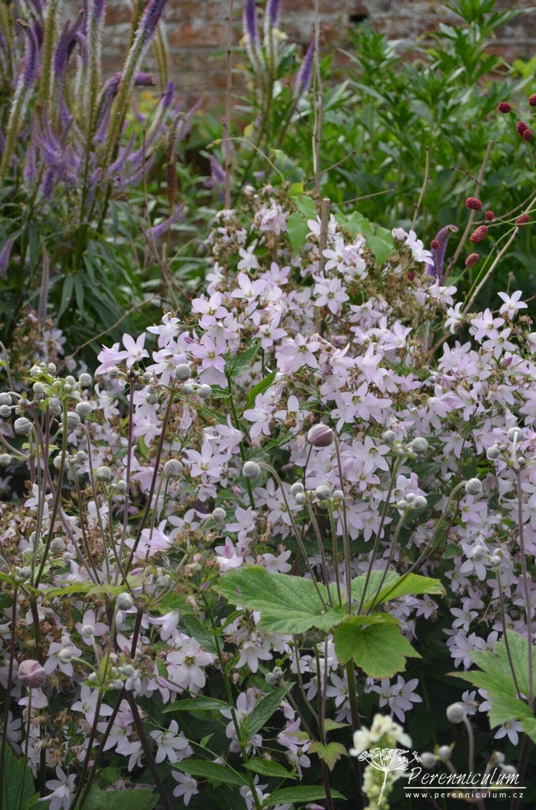 'Loddon Anna' kvete světle lila růžovými květy a dosahuje výšky jen okolo 90 cm, v živných půdách až 120 cm.