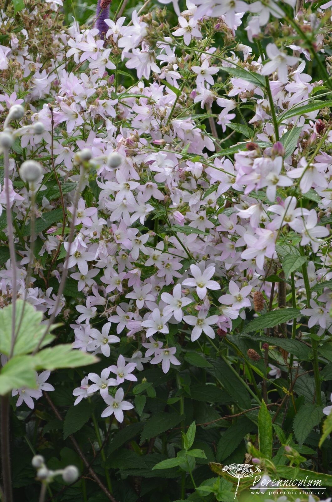 Campanula lactiflora má silný kořenový systém, ze kterého vyrůstají 1-2 m vysoké, olistěné lodyhy v závislosti na lokalitě. Listy jsou kopinaté, zoubkaté, zelené. Každá lodyha nese širokou latu velkých, široce zvonkovitě otevřených květů. Květy jsou zhruba 2,5 cm velké, mléčně modré až modrofialové a nakvétají od konce června do začátku srpna a často remontují v září. Zvonek byl zvolen českou Trvalkou sezóny 2011.