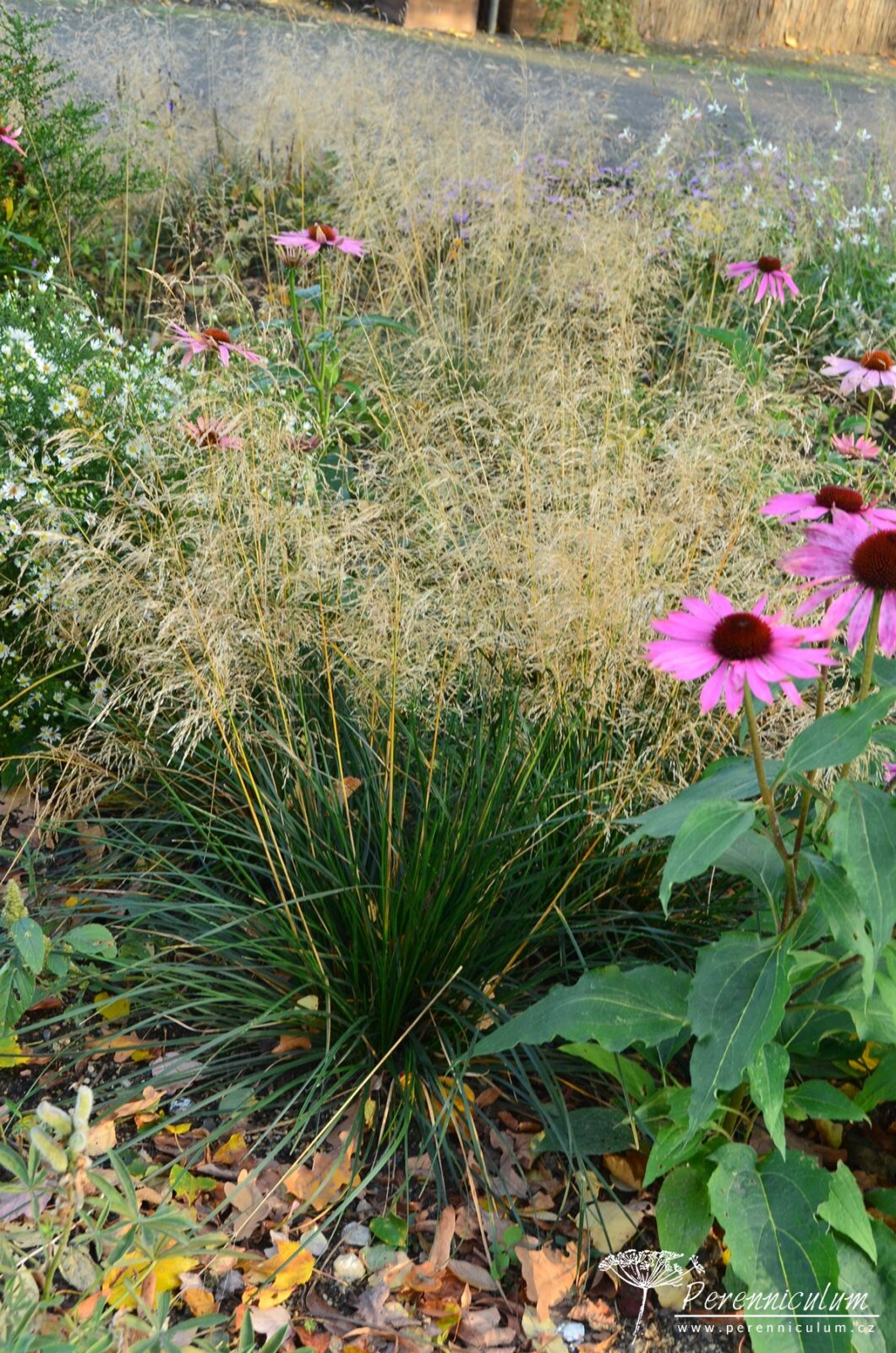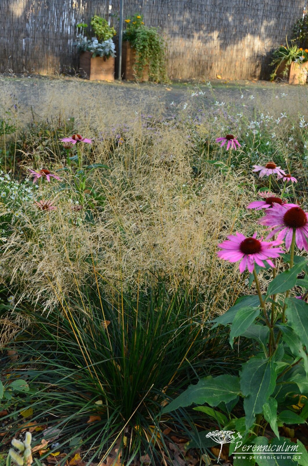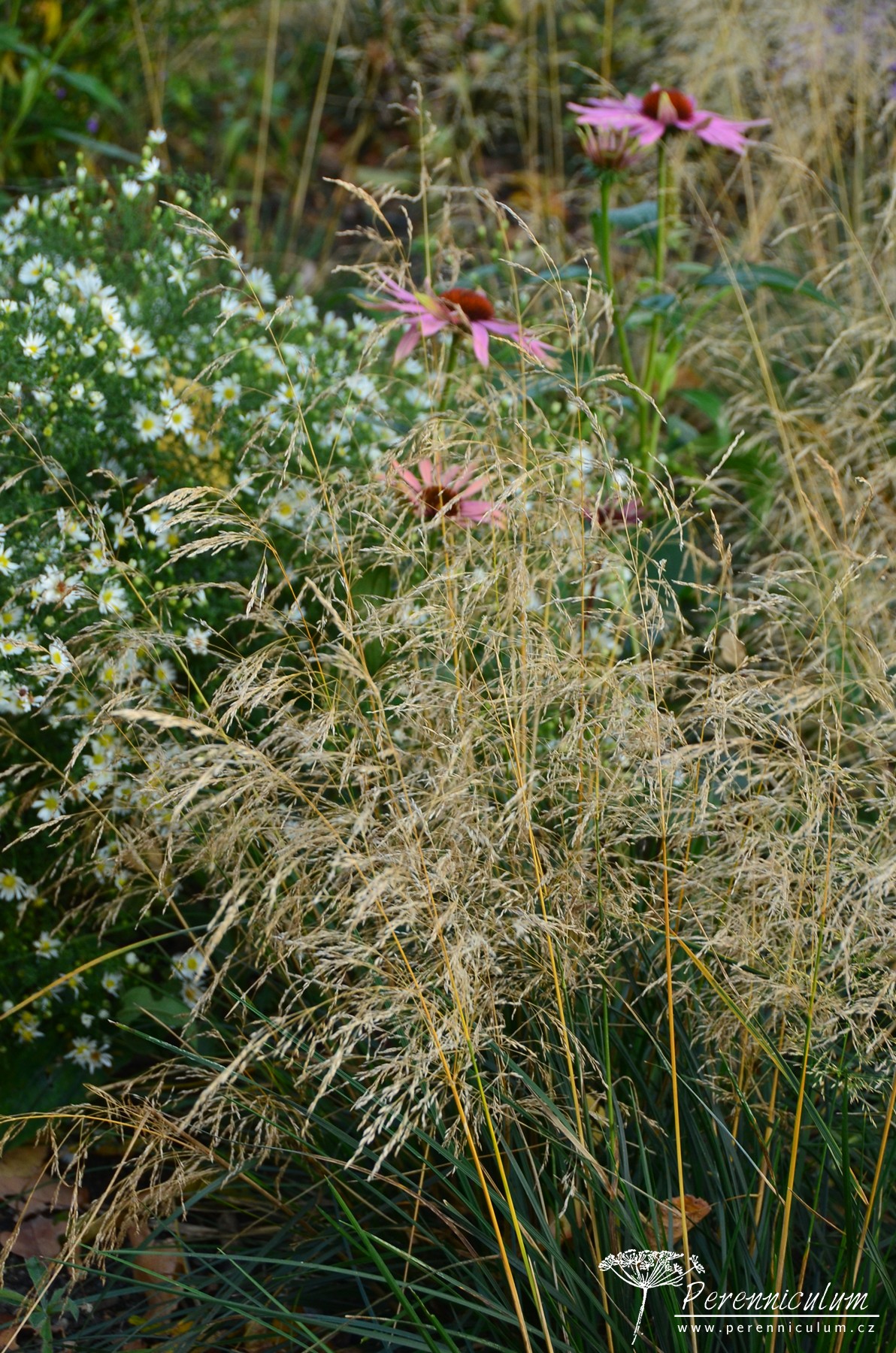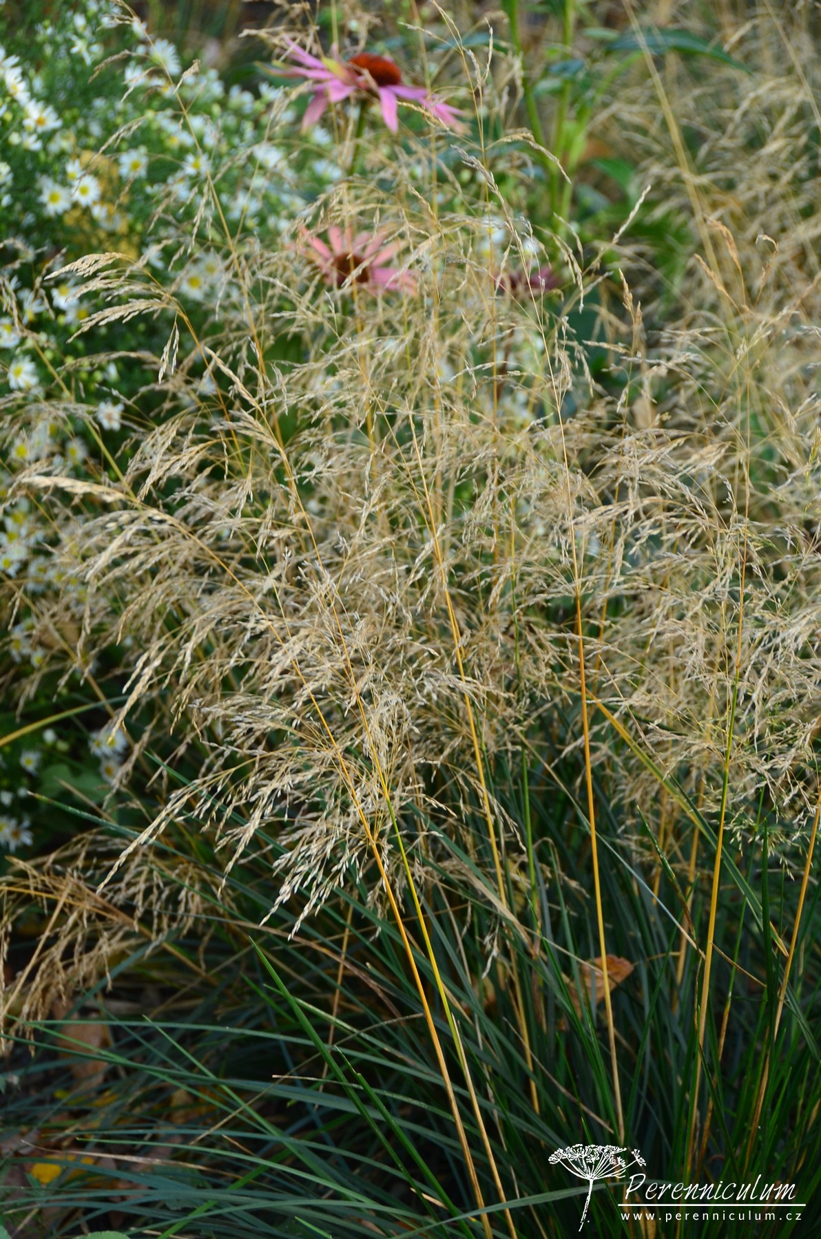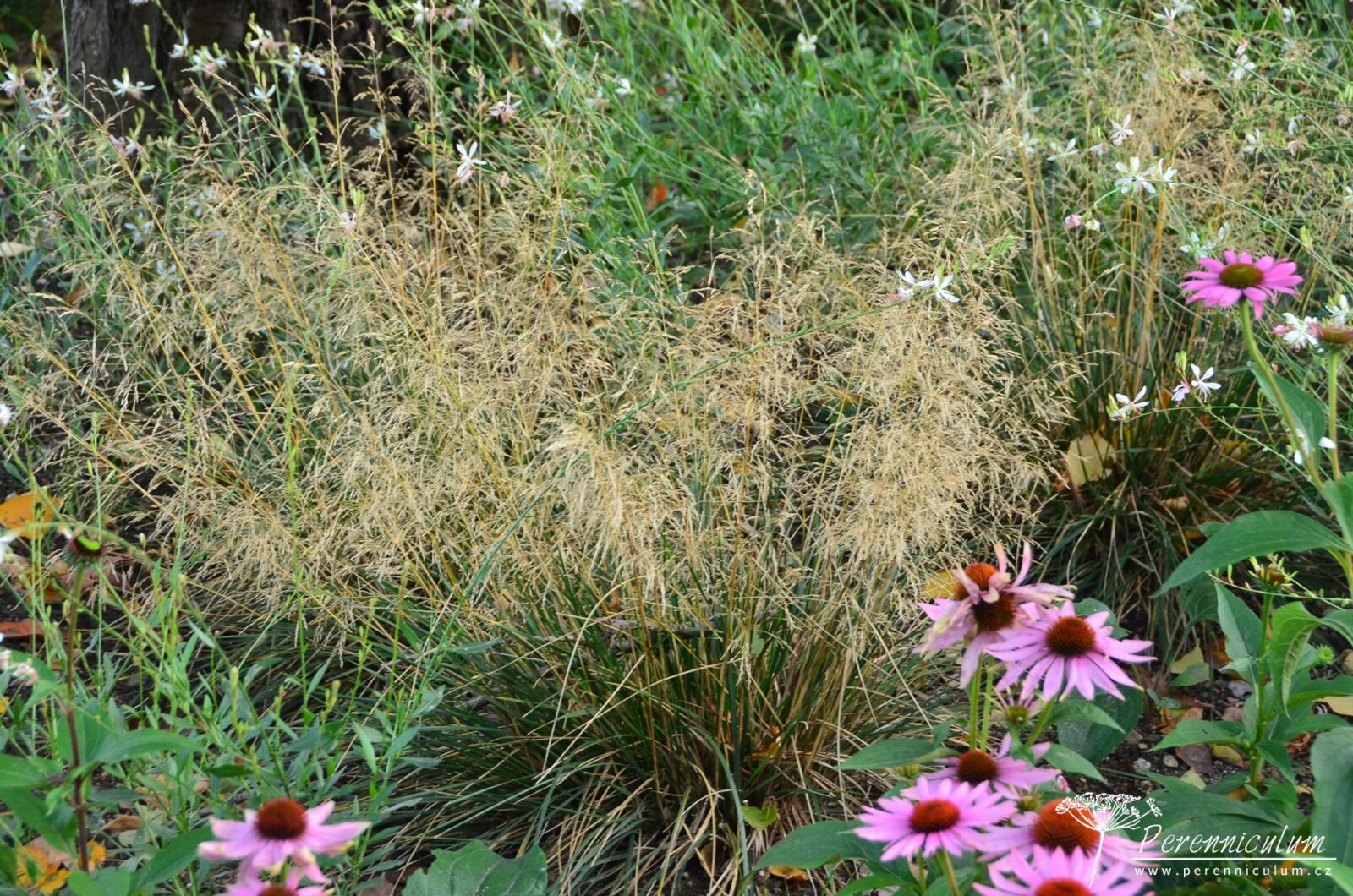 'Pálava' vytváří velmi hustý a nízký trs listů do výšky jen 30-40 cm. V době květu od července do října dosahují klasy jen o něco málo výš než listy, asi do výšky 40-50 cm. Stébla jsou pevná a nelámou se, vydrží až do jara. Důležitou vlastností je, že netvoří klíčivá semena, tudíž nezapleveluje. Jedná se o jeden z nejsuchovzdornějších kultivarů. Kultivar vyselektovala v roce 2000 Dagmar Rajnochová ze semenáčků na jižní Moravě.