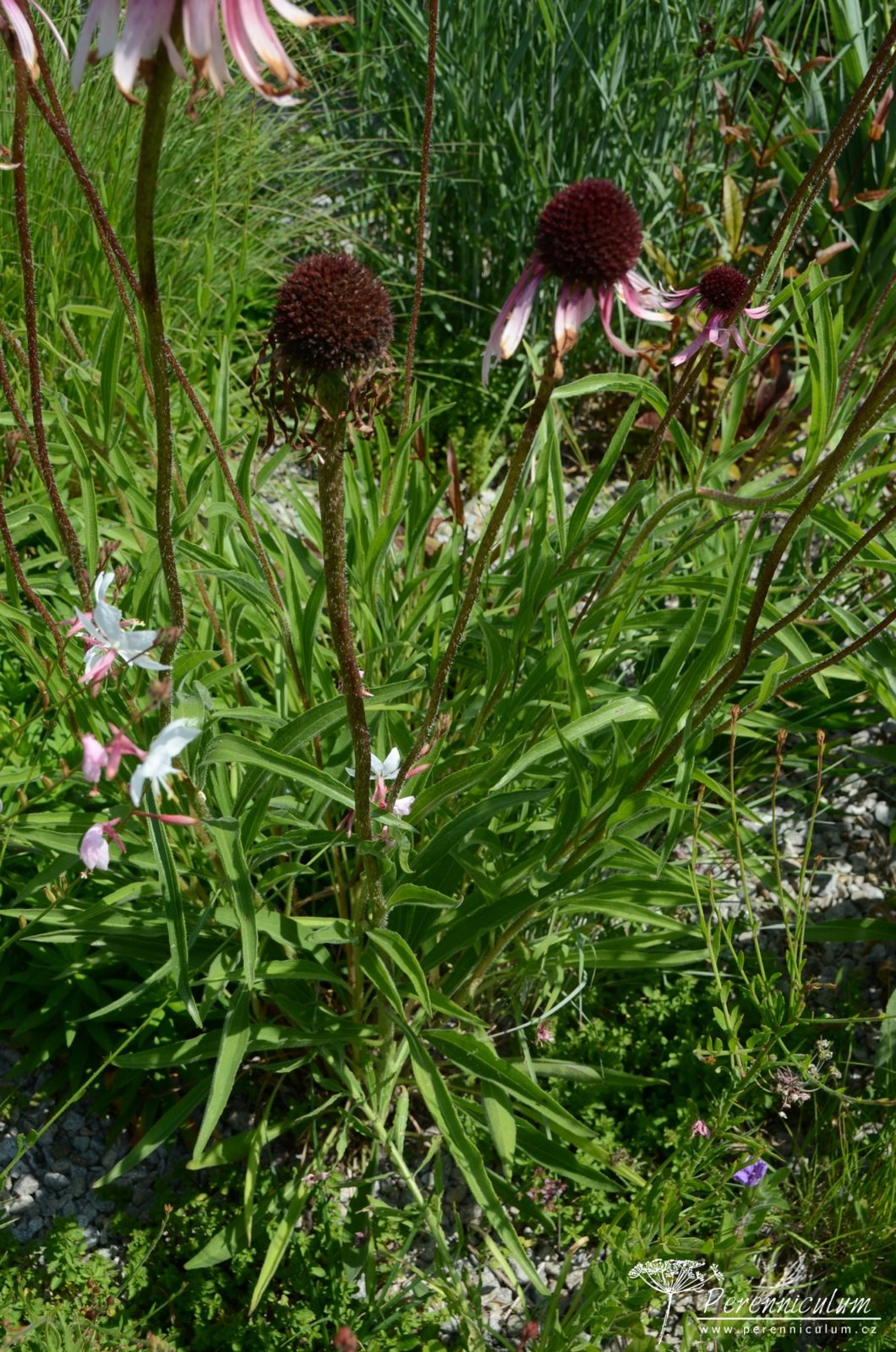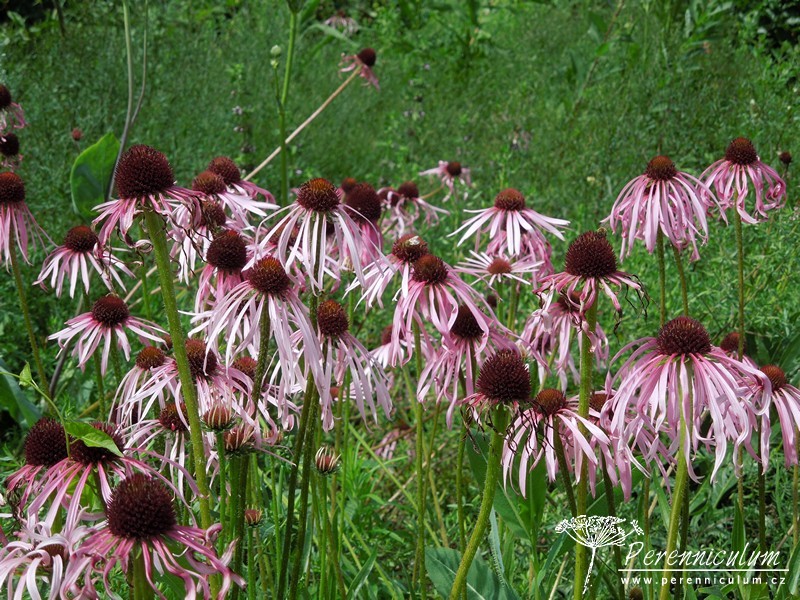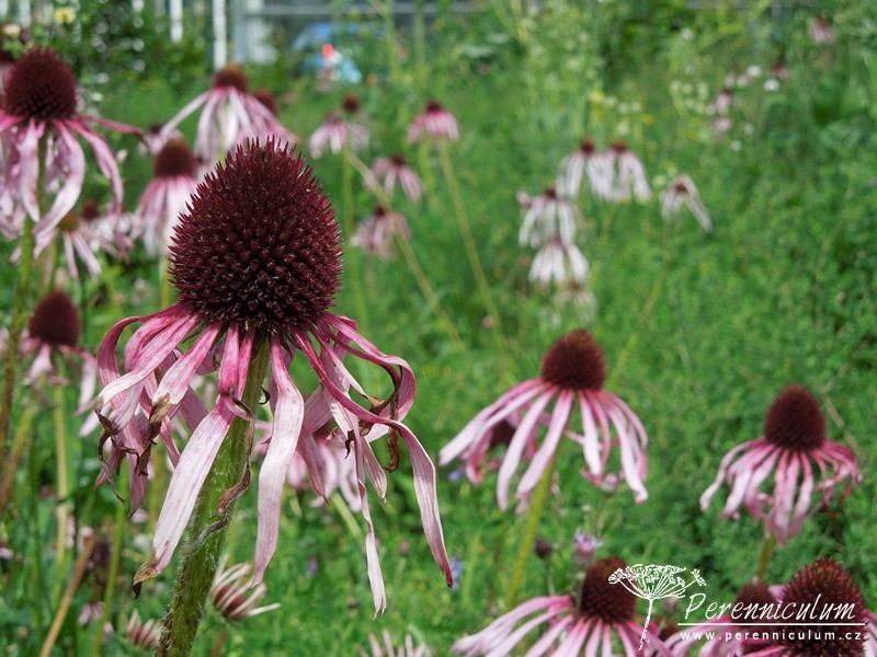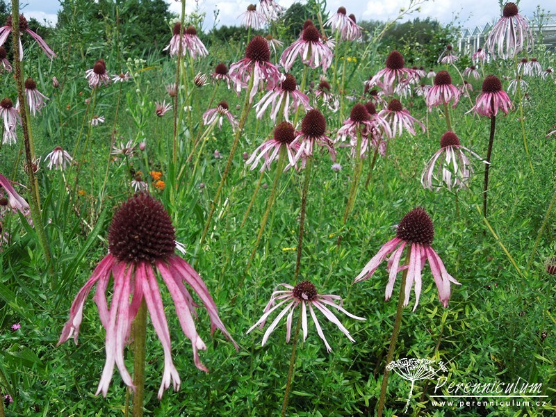 Echinacea pallida pochází z prérií a strání na východě USA. Jedná se o trvalku, která není v Čechách tolik známá a v zahradách používaná jako její blízce příbuzná Echinacea purpurea. Echinacea pallida má divočejší charakter, jelikož její květy nejsou tak výrazné a spíše se používá pro navození dojmu přírodní výsadby. Květenství (úbor) je tvořeno oranžovohnědým, výrazným středem (terč), který s postupným odkvétáním tmavne, a okolním paprskem, který se skládá z velmi úzkých, růžových, 5 - 9 cm dlouhých květů. Květy je vhodné nechat po odkvětu dozrát, tmavé terče pak zdobí zahradu i během zimních měsíců - nejlépe v kombinaci s trávami. Většinou remontuje i bez odstranění odkvetlých květů. Volně se přesévá.