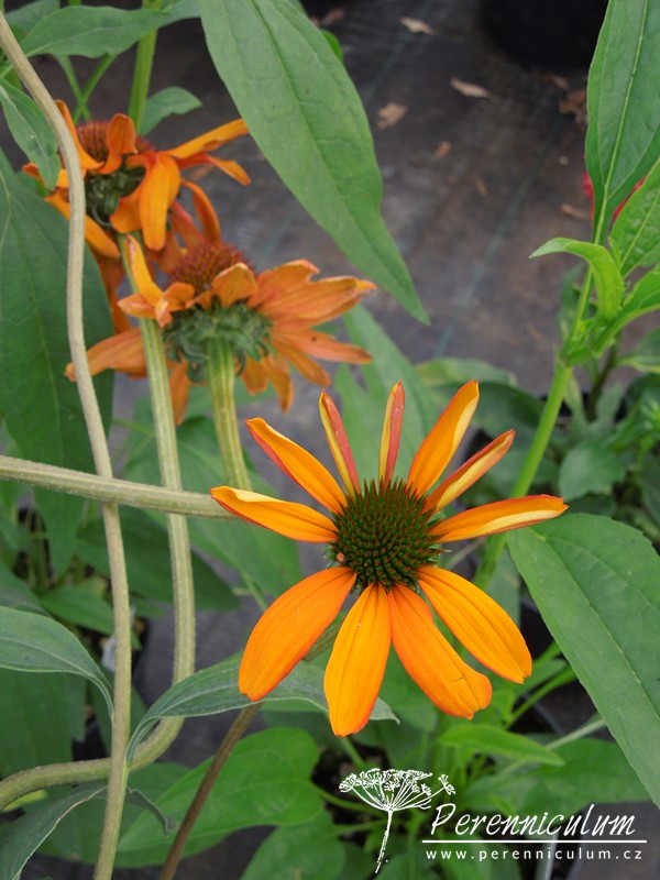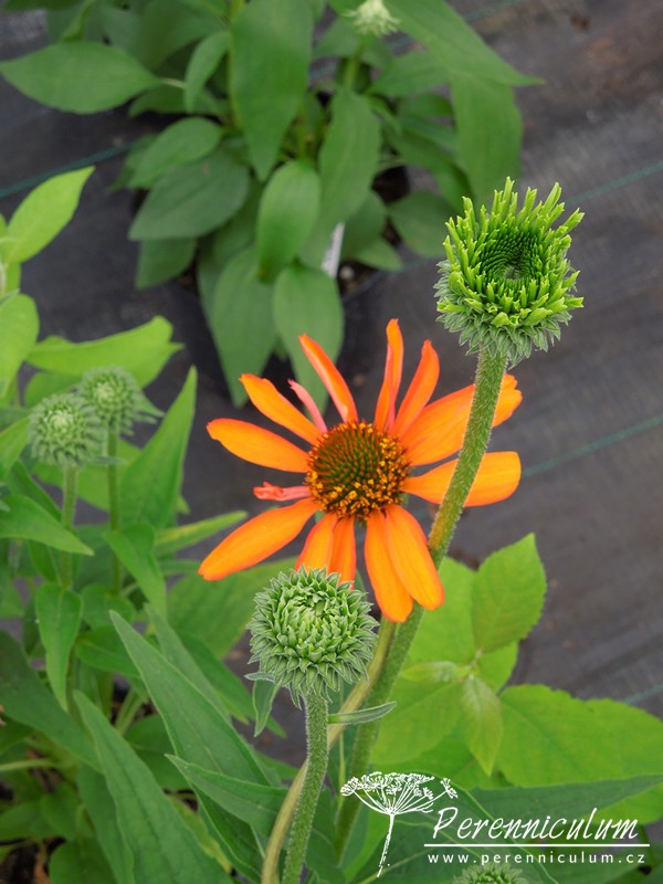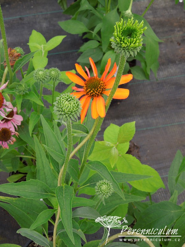 'Tiki Torch' kvete velkými, zářivě dýňově oranžovými květenstvími s tmavě oranžovohnědými středy. Dosahuje výšky okolo 90 cm. Jedná se o křížence Echinacea paradoxa a Echinacea purpurea 'Ruby Giant'. Kultivar byl vyšlechtěn oregonským šlechtitelským závodem Terra Nova Nurseries a uveden na trh v roce 2008.
