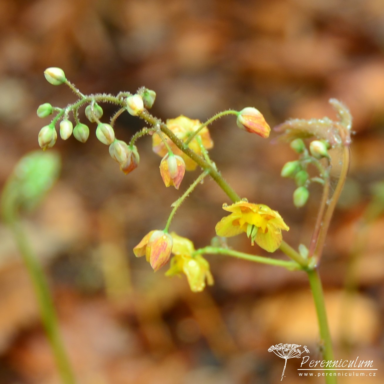 Epimedium × warleyense je zahradní kříženec mezi E. pinnatum subsp. colchicum a E. alpinum. Jako náhodný semenáč se objevil v roce 1909 v anglické zahradě Great Warley, kterou provozovala slečna Ellen Ann Willmott.