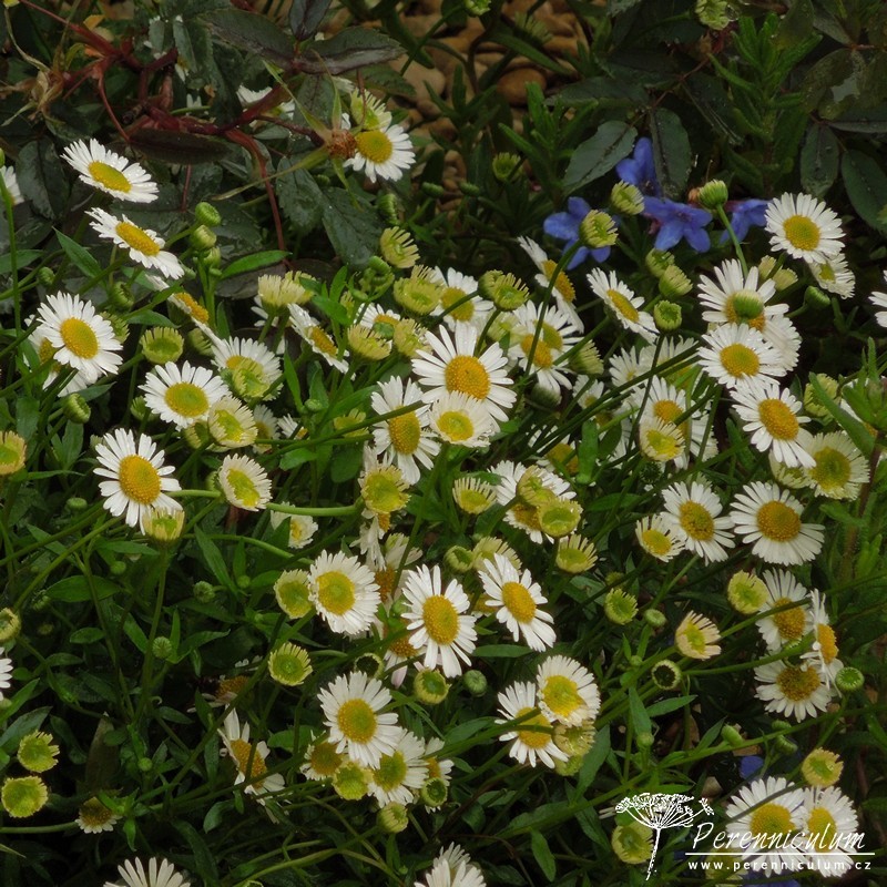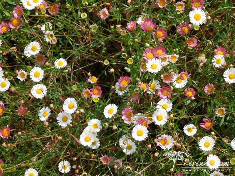 Erigeron karvinskianus pochází z Mexika, Střední Ameriky, ale často zplaňuje v teplejších oblastech Evropy - Středomoří, jižní Anglie. V domovině roste v lesích a na jejich okrajích, na skalách, v Evropě můžeme Erigeron karvinskianus vidět nejčastěji ve spárách chodníků či v suchých zídkách. Rostliny jsou velmi vitální, vytváří velké trsy tenkých stonků nesoucích malé květy podobné sedmikráskám, které jsou bílé, ale postupem času tmavnou až do sytě růžové se žlutým středem. Velmi aktivně se vysemeňuje.