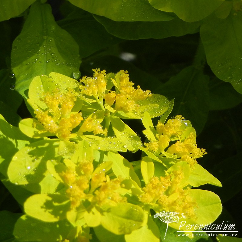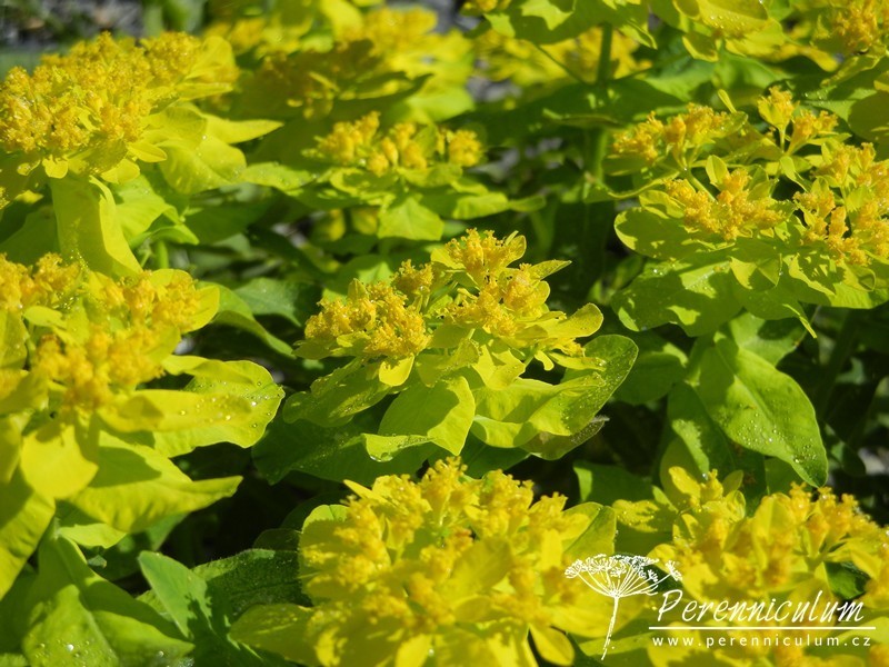 Z mohutného kořenového systému vyrůstá velké množství až 40 cm vysokých, chlupatých stonků. Vytváří úhledné, kopulovité, nízké trsy. Podlouhlé, elipčité, jemně chlupaté listy vyrůstají vstřícně. Nenápadné, žluté květenství (lichookolík) zvýrazňují zářivě, citrónově žluté listeny, které vyrůstají radiálně v počtu pěti těsně pod lichookolíkem. Listeny se s postupem odkvétání barví do oranžova. Kvete velmi brzy, již od dubna až do května, tudíž často dělá společnost pozdním cibulovinám zejména česnekům (Allium) a tulipánům (Tulipa).