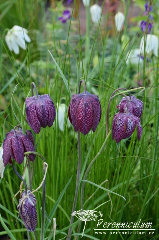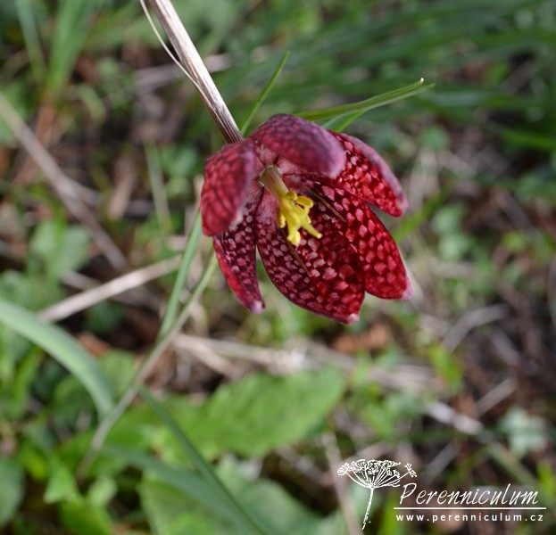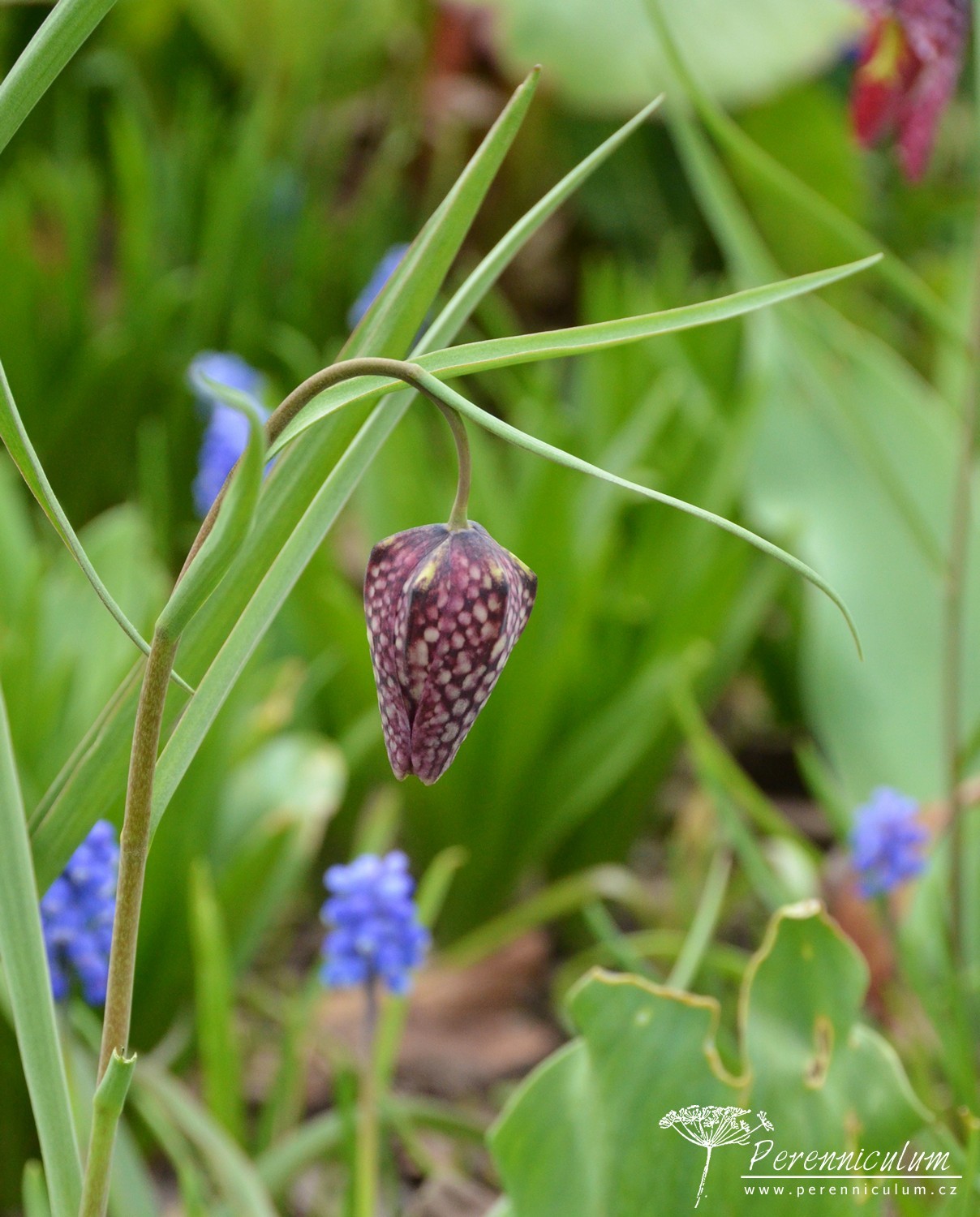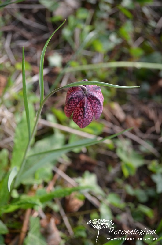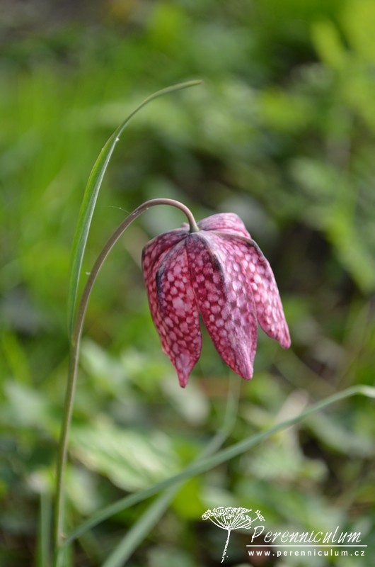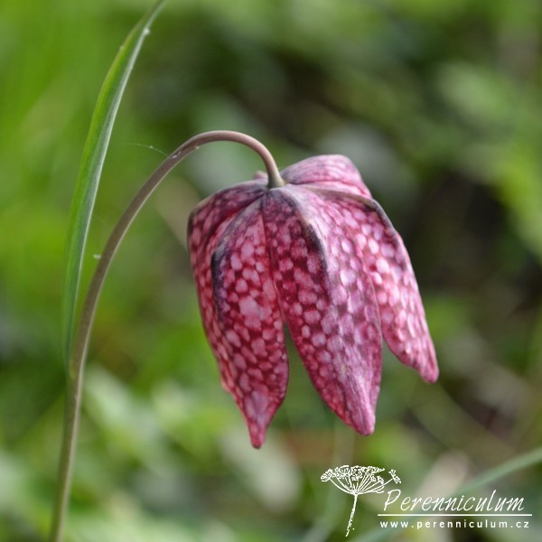 Fritillaria meleagris je vytrvalá cibulovina dosahující výšky okolo 25 cm. Velmi subtilní habitus tvoří úzká lodyha s několika úzkými, čárkovitými, sivě zelenými listy. Na lodyze vykvétá v průběhu dubna či května obvykle jeden, vzácně dva nící, zvonkovité purpurové květy s pravidelnými, růžovými až bílými skvrnami uspořádanými do šachovnice.