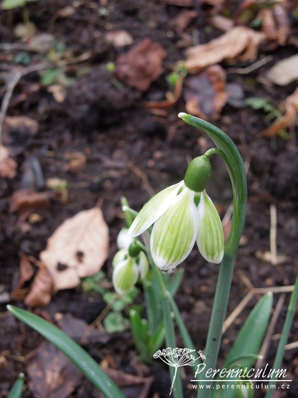 'Green Tear' dokazuje, že Galanthofilie, jak sběratelství sněženek nazývají v Británii, kde se stala tak populární, je velmi drahý koníček. Jediná cibulka kultivaru 'Green Tear' byla vydražena v online aukci za 360 liber, přičemž tento rekord byl pokořen ještě tentýž rok kultivarem 'Elizabeth Harrison'. Více informací najdete zde>>. 'Green Tear' patří mezi jedny z nejlepších tzv. zelených sněženek. Jednoduché květy se skládají z téměř zelených vnitřních okvětních plátků a bílých vnějších plátků s výraznými, hustými, limetkově zelenými proužky. Kultivar je poměrně vitální a robustní. Poprvé byl objeven Gert-Janem Van der Kolkem v roce 2000 v Nizozemí.