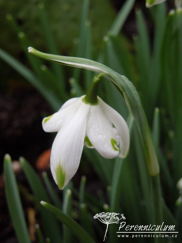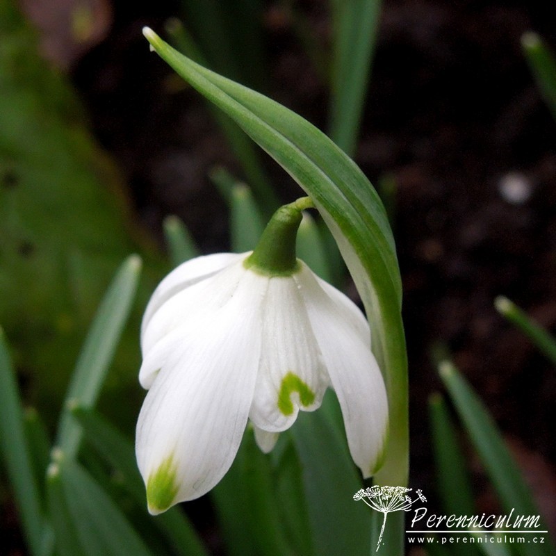 Z malé, zhruba 2 až 4 cm velké cibulky vyrůstají sivozelené listy a přímá lodyha nesoucí vždy jeden sněhově bílý květ vyrůstající ze sivozeleného, toulcovitého listenu. Listy se po odkvětu prodlužují. Okvětí nicího květu je složeno z 3 vnějších, delších, čistě bílých plátků a 3 vnitřních, kratších, na konci vykrojených okvětních plátků s charakteristickou zelenou skvrnou. Cibulky se vitálně množí přirůstáním a vytváří bohaté trsy o průměru až 25 cm.