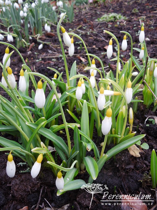 Květy čistě bílé se žlutou kresbou na vnitřních okvětních plátcích a žlutými semeníky.