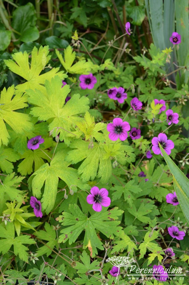 Geranium 'Ann Folkard' je velmi vitální, vytváří vzdušné trsy tenkých stonků nesoucích velké množství květů od června po celé léto. Dosahuje výšky okolo 60 cm. Habitus je poněkud rozložitý, dokáže se rozrůstat bez zakořeňování stonků (na rozdíl od G. procurrens) do šířky až 90 cm. Při poskytnutí opory (keře, březové proutky) může i "šplhat" do výšky. Listy raší téměř žluté a vyvíjí se v limetkově zelené s postupem sezóny. V polostínu mohou být listy zelenější. Anilinově fialovorůžové květy s výrazným černým středem a žilnatinou měří až 4 cm v průměru!