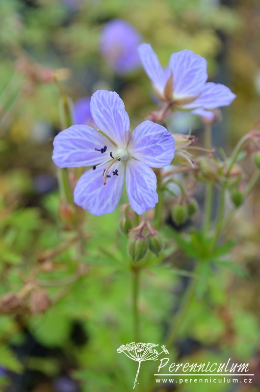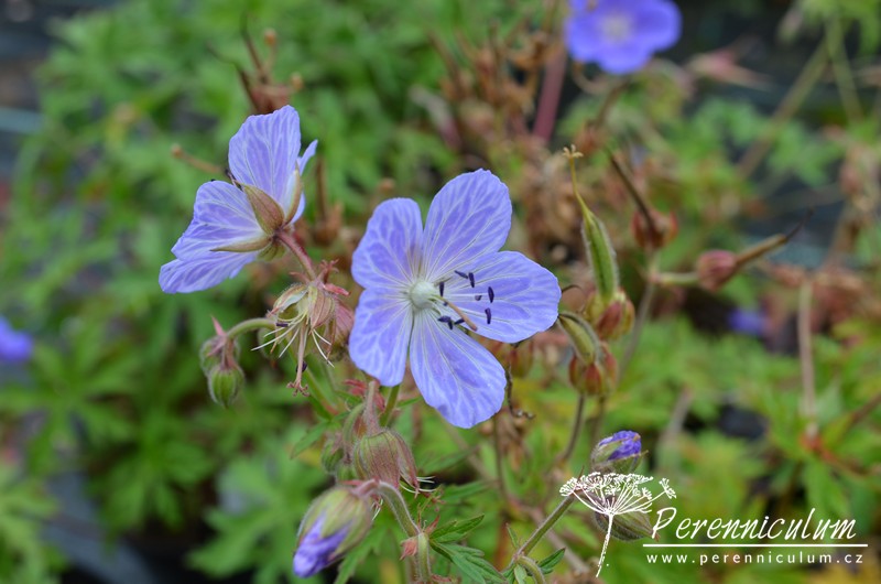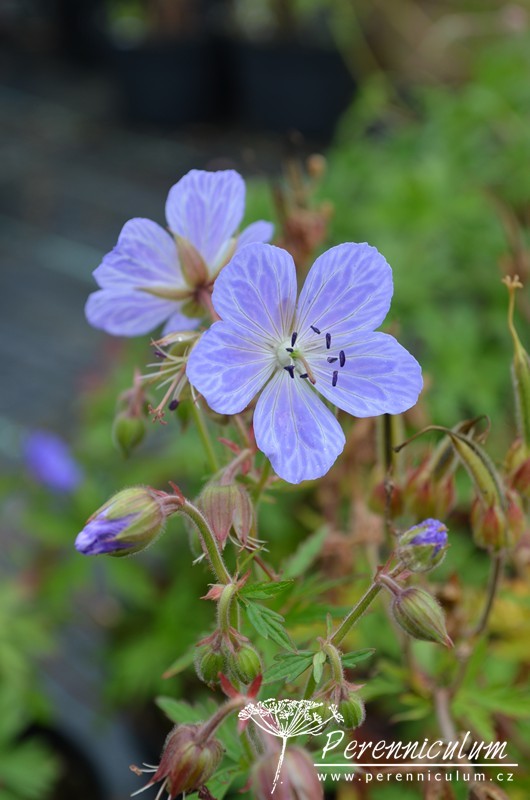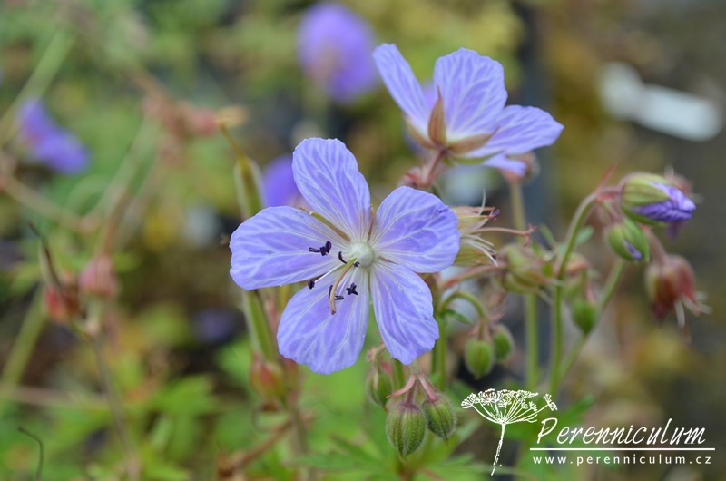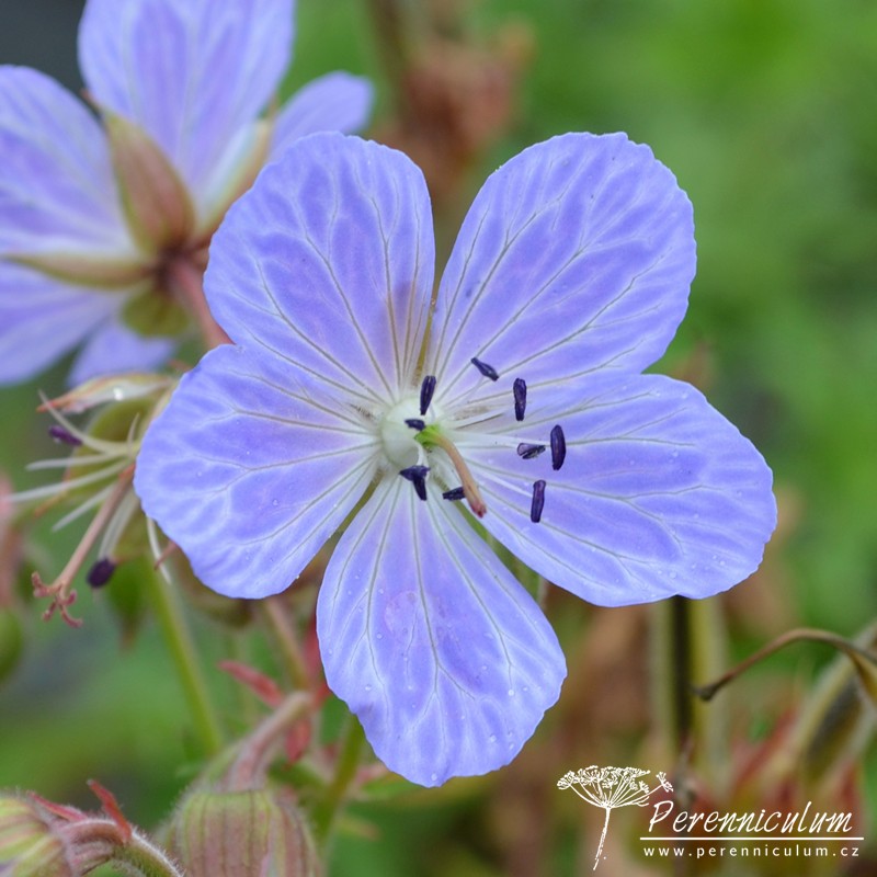 Z masitého, trsovitého kořenového systému vyrůstá vysoký trs dosahující až 75 cm (ve vhodných podmínkách až přes metr). Sytě zelené listy jsou hluboce vykrajované téměř až k bázi do sedmi až devíti laloků, které jsou dále hluboce laločnaté a laloky hrubě zubaté. V červnu až červenci vykvétají na bohatě větvených lodyhách poměrně velké květy v modro-fialových či bílých odstínech s tmavě růžovou žilnatinou.
