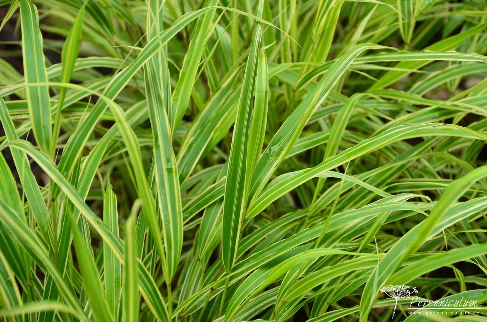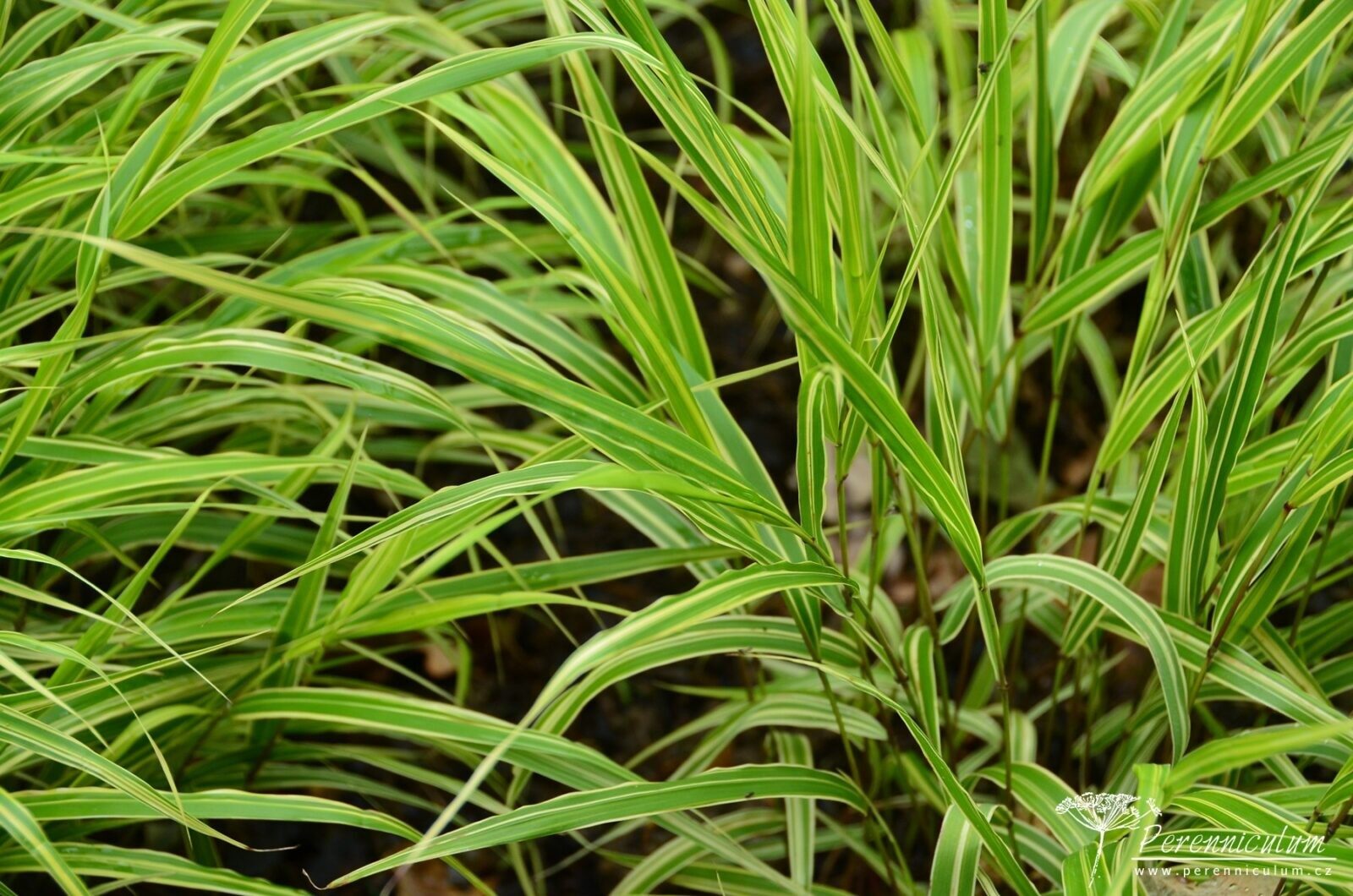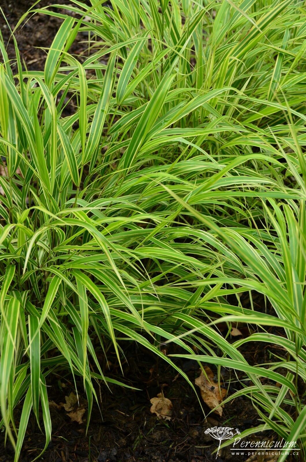 Hakonechloa macra je endemitem jihovýchodní části ostrova Honshu v Japonsku, kde roste ve vlhkých štěrbinách a spárách skal. Obloukovitě převisající, úzké, dlouhé listy vytváří úhledný, hustý, kopečkovitý trs, jehož průměr může v dospělosti dosáhnout až 60 cm. Dlouze řapíkaté, jasně zelené, necelý centimetr široké listy se na podzim barví do bronzovočervena. Od srpna nesou dlouhé, tenké, obloukovitě přepadající stonky nenápadné, rozvolněné klásky béžové až mahagonové barvy.