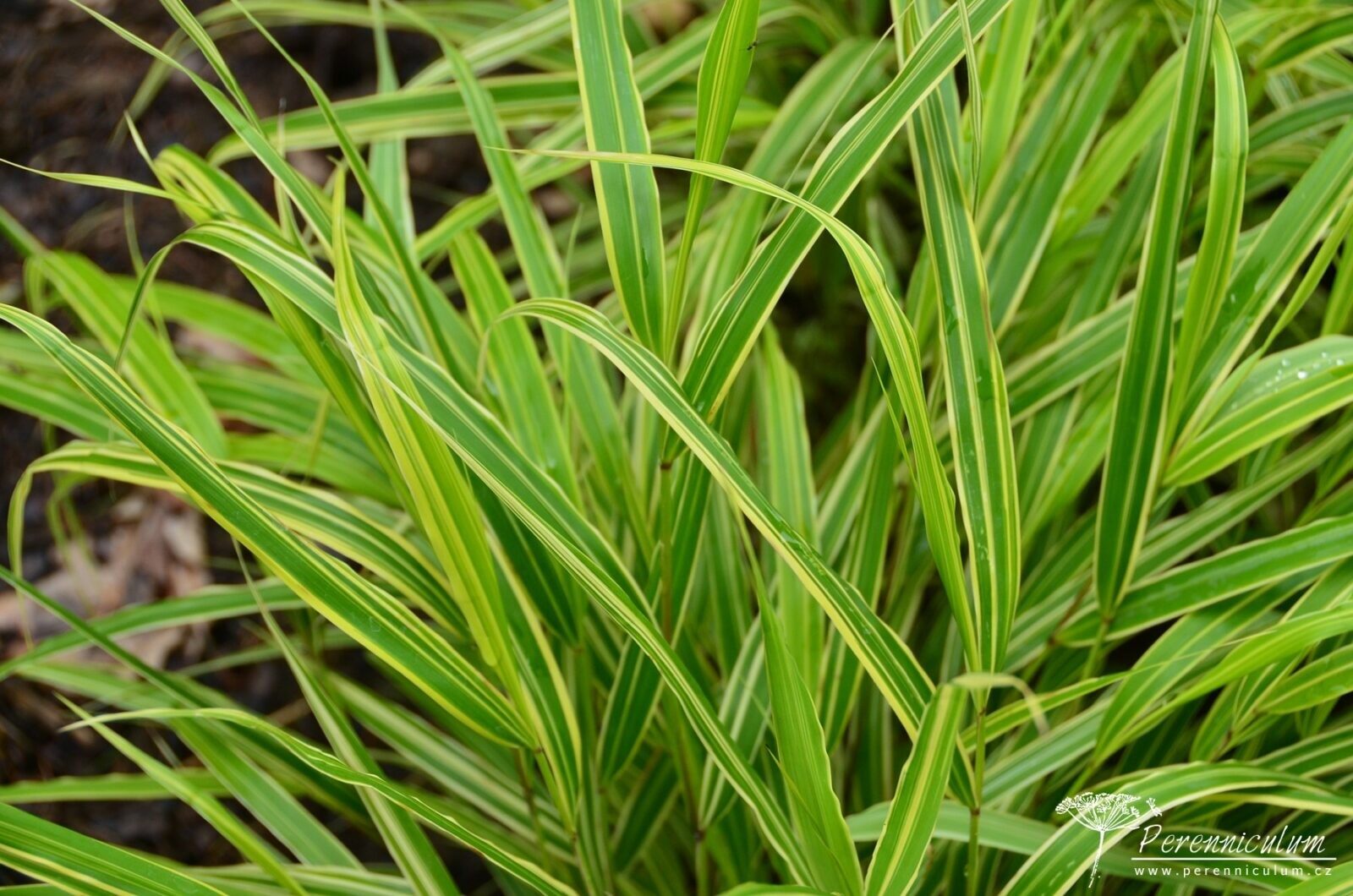 'Albostriata' má zelené listy s různě širokými krémově žlutými pruhy. Dosahuje kompaktní výšky okolo 30 cm. Toleruje více slunce než žlutolisté kultivary.