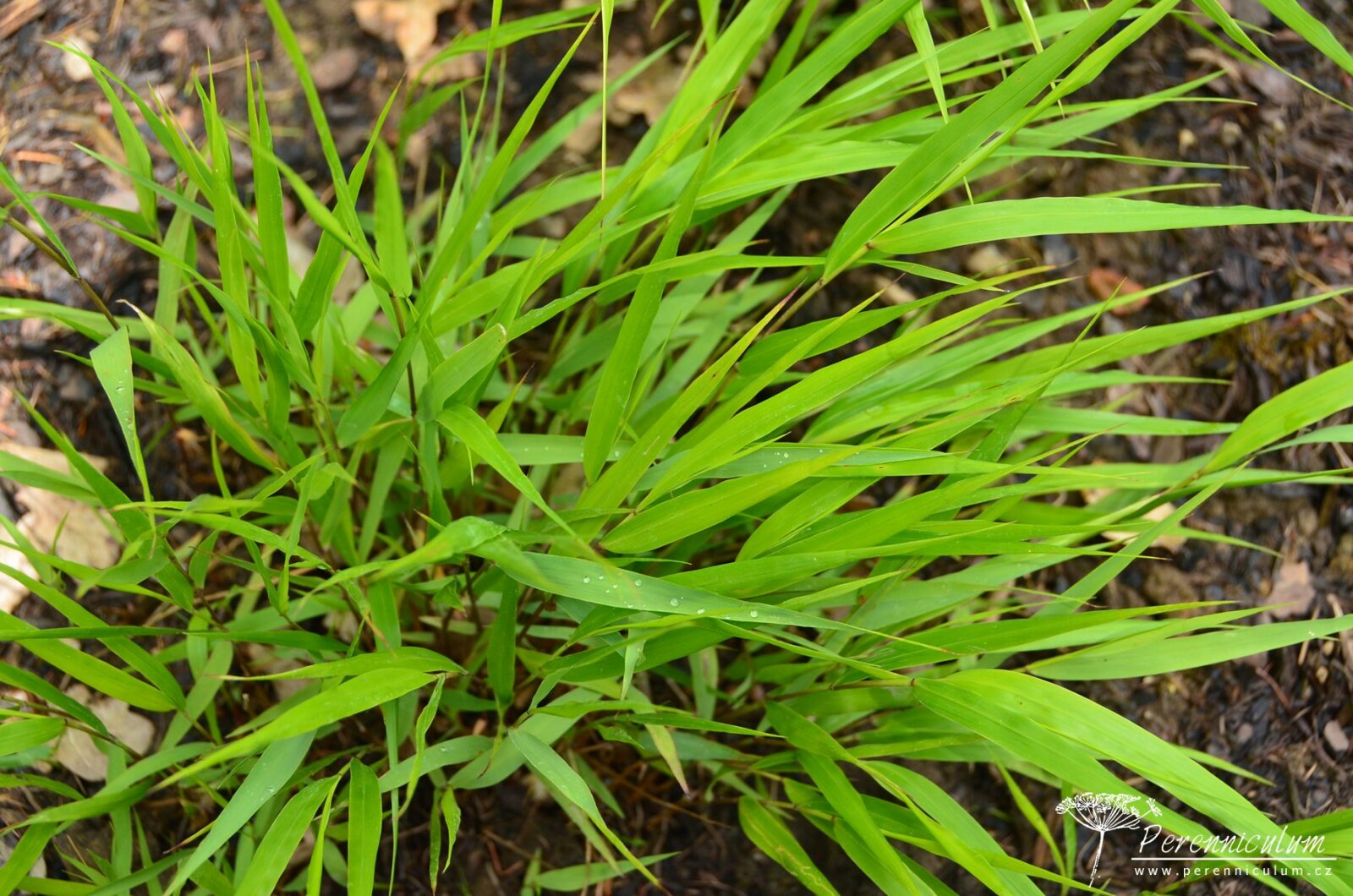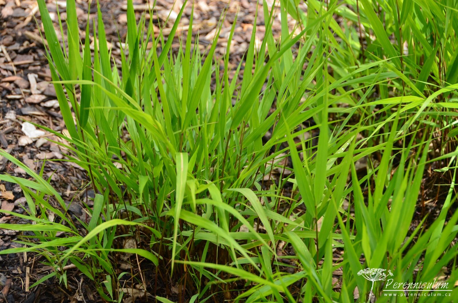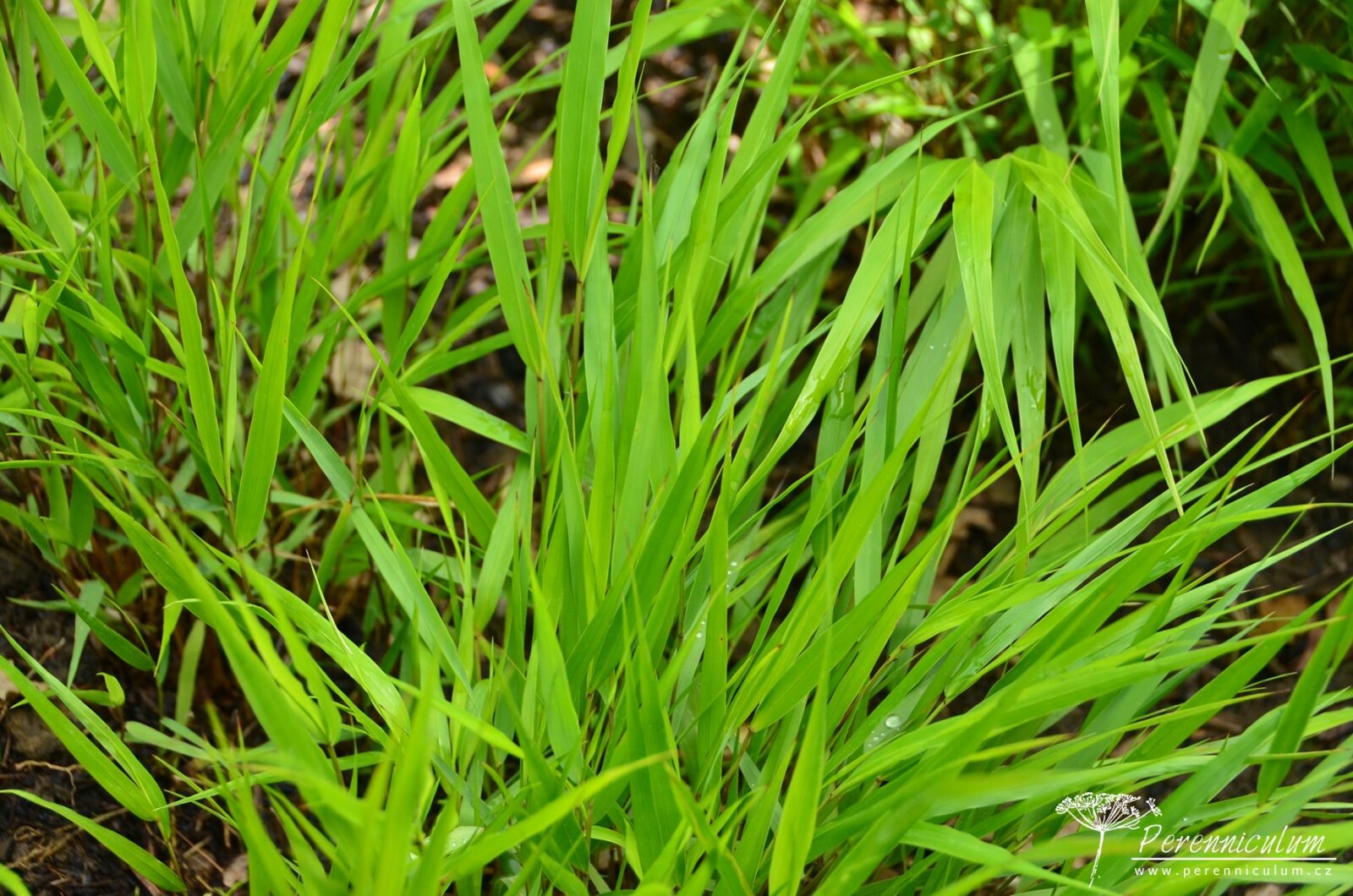 Hakonechloa macra je endemitem jihovýchodní části ostrova Honshu v Japonsku, kde roste ve vlhkých štěrbinách a spárách skal. Obloukovitě převisající, úzké, dlouhé listy vytváří úhledný, hustý, kopečkovitý trs, jehož průměr může v dospělosti dosáhnout až 60 cm. Dlouze řapíkaté, jasně zelené, necelý centimetr široké listy se na podzim barví do bronzovočervena. Od srpna nesou dlouhé, tenké, obloukovitě přepadající stonky nenápadné, rozvolněné klásky béžové až mahagonové barvy.