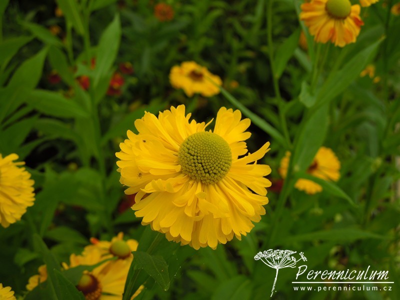 Rod Helenium zahrnuje až 40 druhů, mezi které patří i Helenium autumnale, původní rodič většiny zahradních hybridů. Helenium autumnale pochází ze Severní Ameriky, kde roste na vlhkých loukách až bažinách. Na křížení zahradních hybridů se dále podílely také Helenium bigelovii, Helenium flexuosum či Helenium nudiflorum.