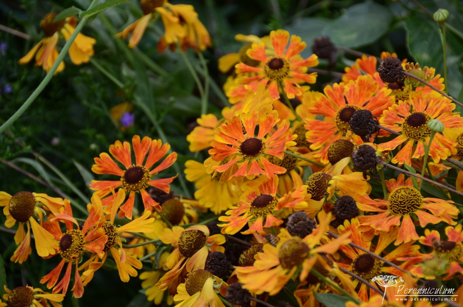 Rod Helenium zahrnuje až 40 druhů, mezi které patří i Helenium autumnale, původní rodič většiny zahradních hybridů. Helenium autumnale pochází ze Severní Ameriky, kde roste na vlhkých loukách až bažinách. Na křížení zahradních hybridů se dále podílely také Helenium bigelovii, Helenium flexuosum či Helenium nudiflorum.