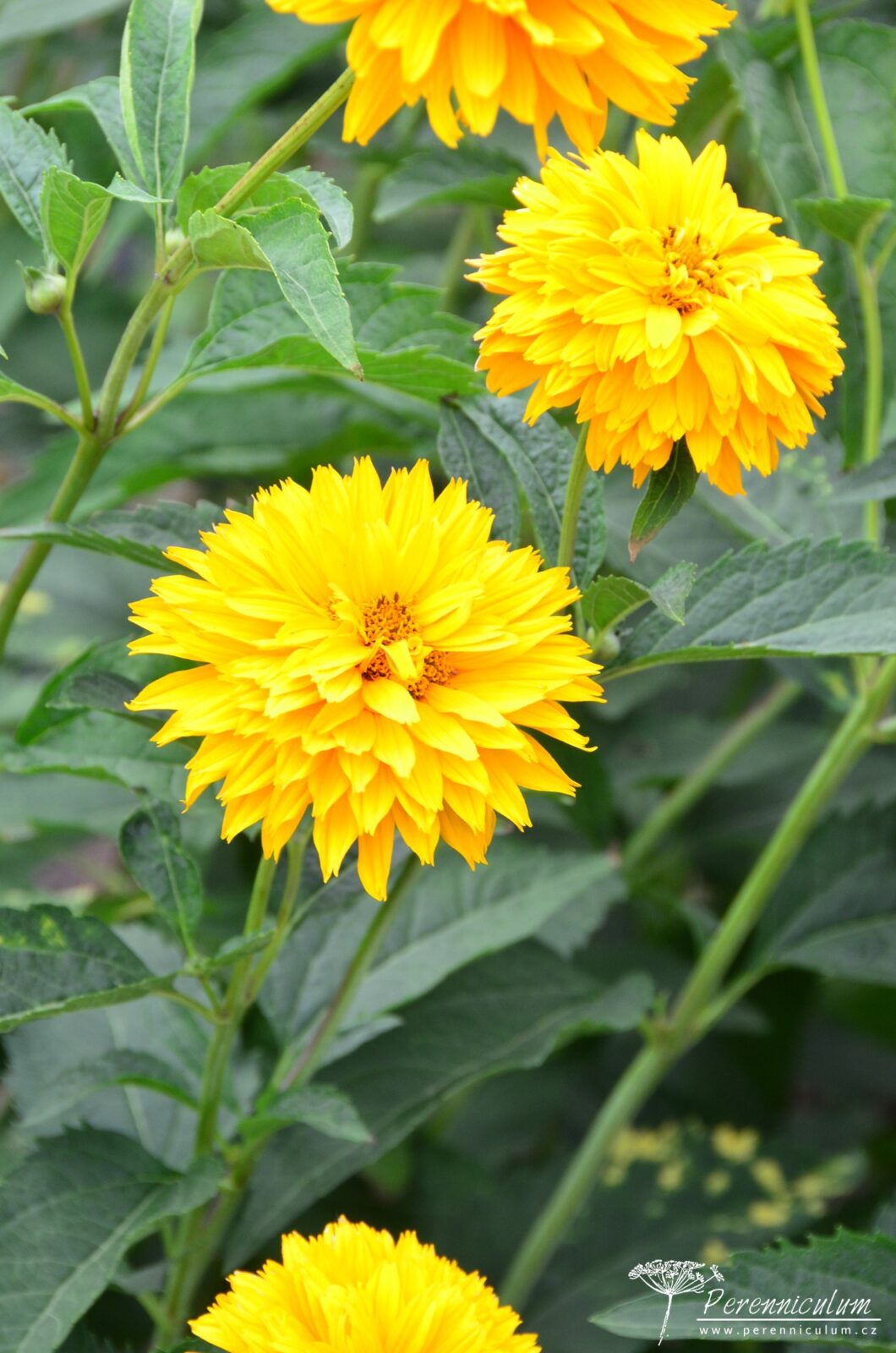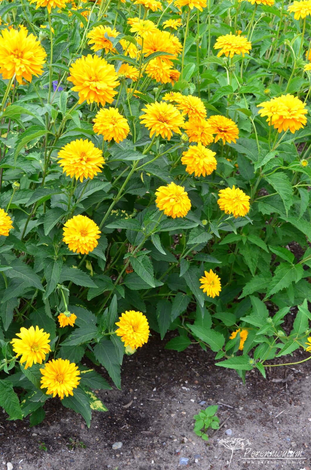 var. scabra se od var. helianthoides, která je v zahradách méně používána, rozezná díky drsně chlupatým stonkům a listům.