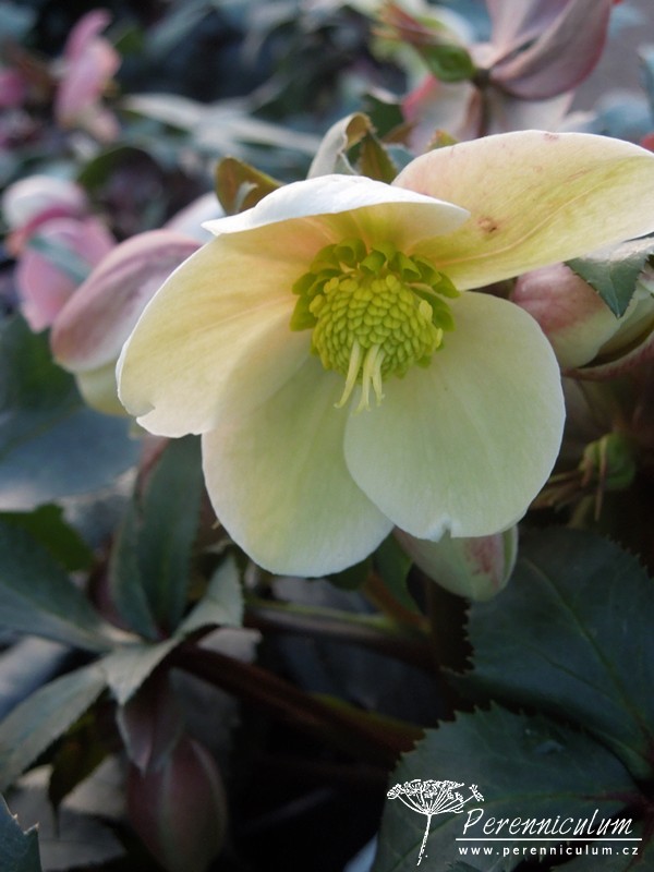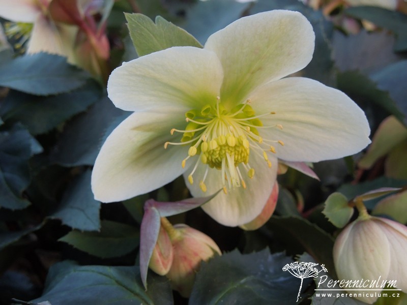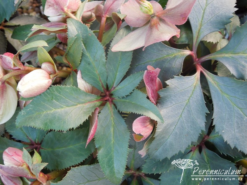 Helleborus × ericsmithii se vyplatí pěstovat už jen pro její dekorativní listy. Jsou tmavě zelené, s špičatě zubatým okrajem (známka H. argutifolius), stříbrnošedým mramorování podél žilnatiny a jakýmsi leskle cínovým potahem. Velké květy měří i přes 10 cm v průměru a tyčí se vysoko nad trsem listů. Kvetou od února do dubna a vydrží kvést velmi dlouhou dobu.