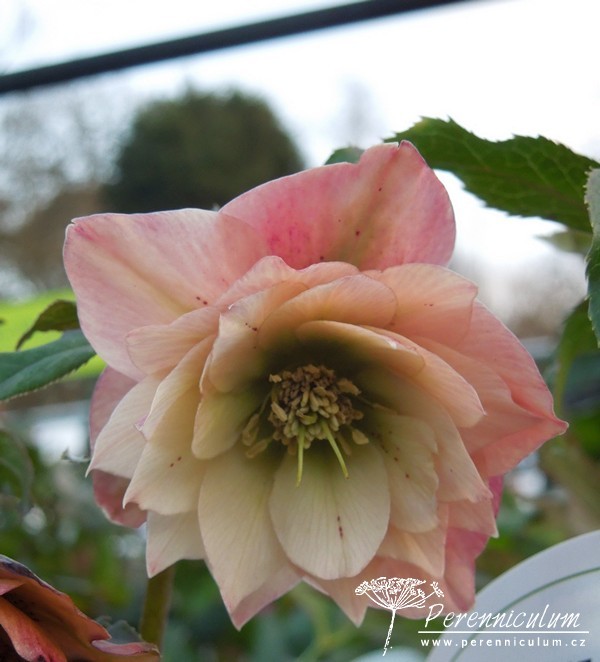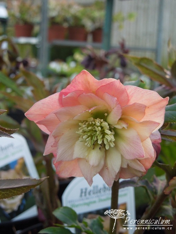 'Harvington Double Apricot' kvete nápadnými, nícími, plnokvětými květy, které mají odstíny sladce meruňkové, broskvové až růžovobéžové. Jelikož se množí semeny, mohou se vyskytnout malé odchylky v odstínu barvy. Sérii variet pojmenovanou souhrnně Harvington Series, vyšlechtil Hugh Nunn, který provozuje svou školku specializovanou na čemeřice, kandíky (Erythronium) a trojčetky (Trillium) v městečku Harvington v Británii.