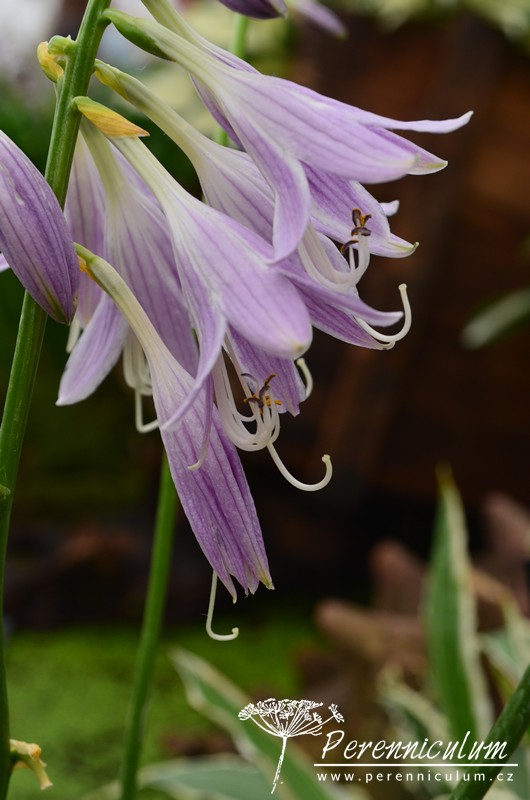 Květy světle levandulové s tmavěji fialovými proužky a bílými okraji.