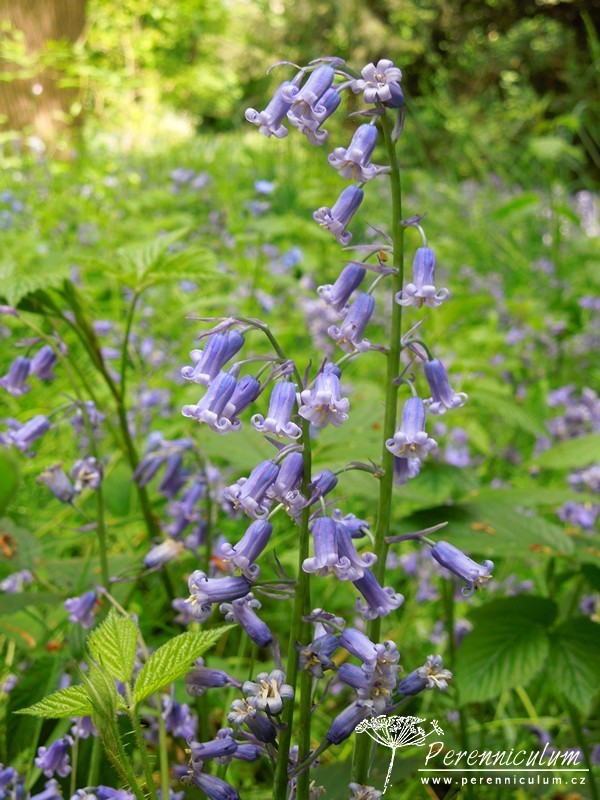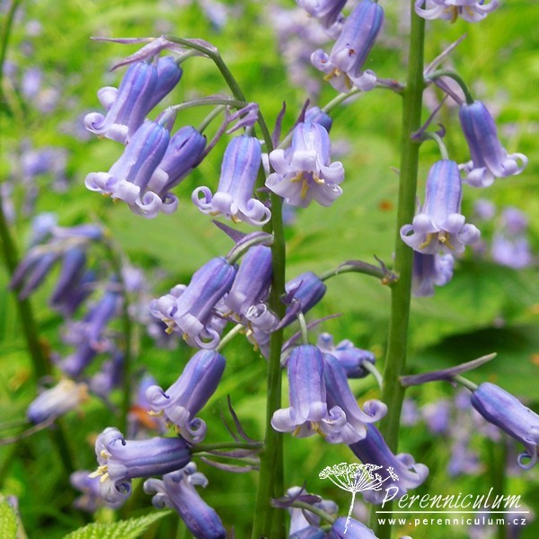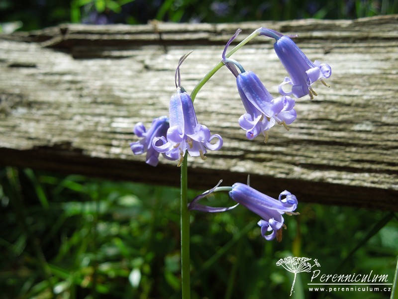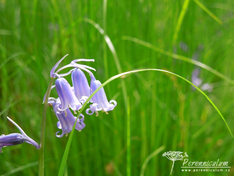 Ze zásobní cibule vyrůstá na jaře 3 až 6 leskle svěže zelených, úzkých (2,5 cm), lineárních listů. Nevětvené, přímé květní lodyhy mají konce obloukovitě se sklánějící dolů a nesou až 16 zvonkovitých, světle modrých, sladce vonných květů. Kvete od dubna do května. Cibule se rychle množí a rozrůstají se tak ve velké kolonie. Ve Velké Británii jsou známy celé lesy s bylinným patrem pokrytým modrými Hyacinthoides non-scripta.