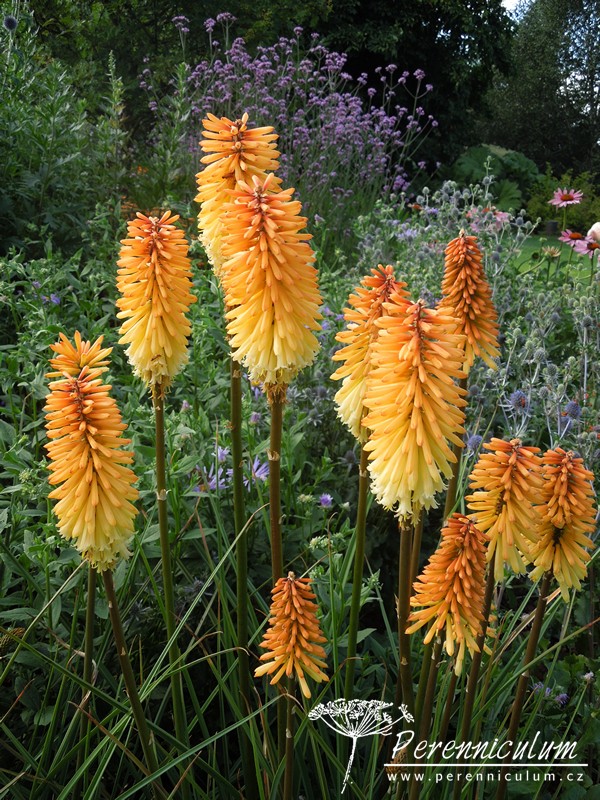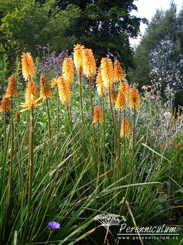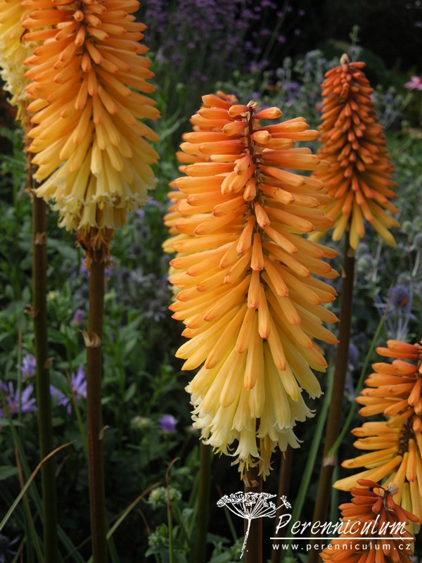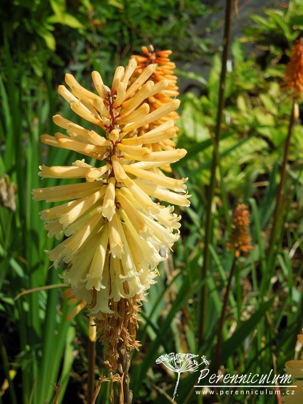 'Tawny King' Zářivě oranžová poupata se rozvíjí v pastelově světle žluté květy. Celé květenství nesou nápadně bronzové stonky dosahující až 120 cm. Kultivar je velmi ceněný pro svou dlouhou dobu kvetení a spolehlivost v bohaté násadě květů, v našich podmínkách však může být choulostivější než ostatní kultivary, USDA zóna je uváděna Z7 (do -17,8°C).