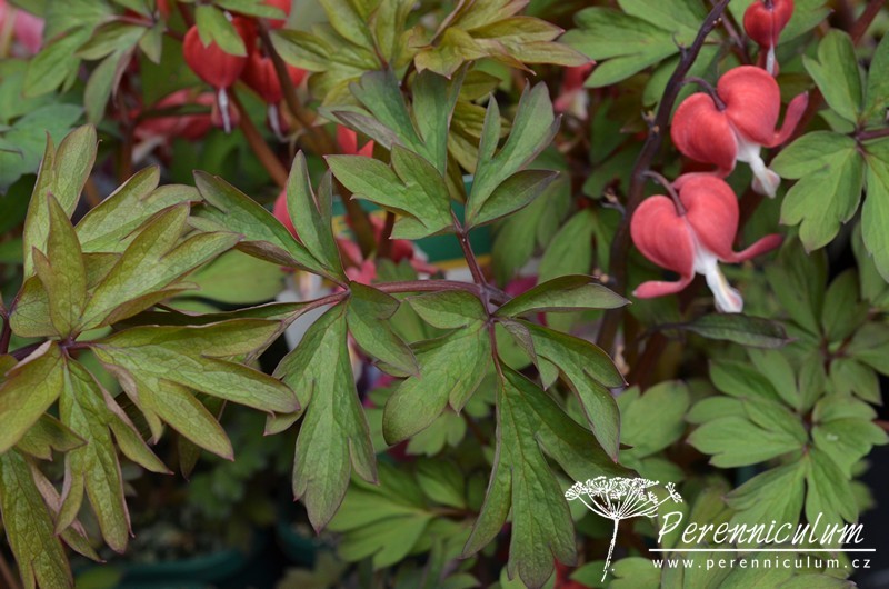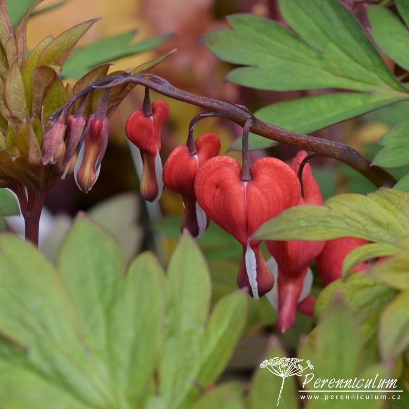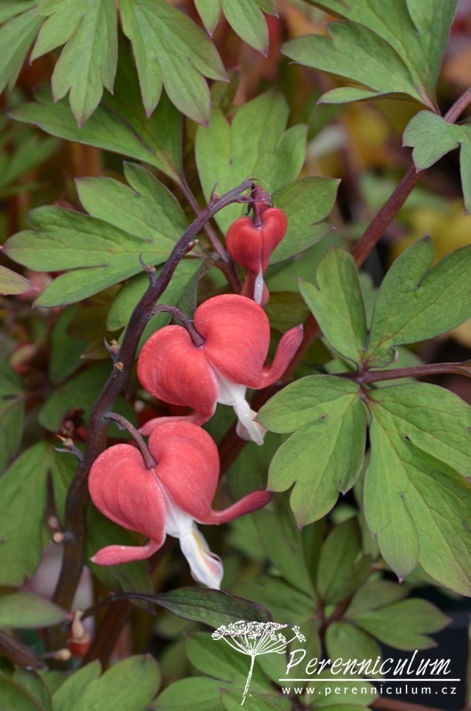 'Valentine' je poměrně nový kultivar introdukovaný v roce 2011 kanadskou trvalkovou školkou Pride of Place Plants. Rašící listy mají na jaře lehký nádech do purpurova a stonky jsou tmavě purpurové až vínové. Klasické srdíčkovité květy jsou teple červené až růžovočervené s klasickým bílým středem.
