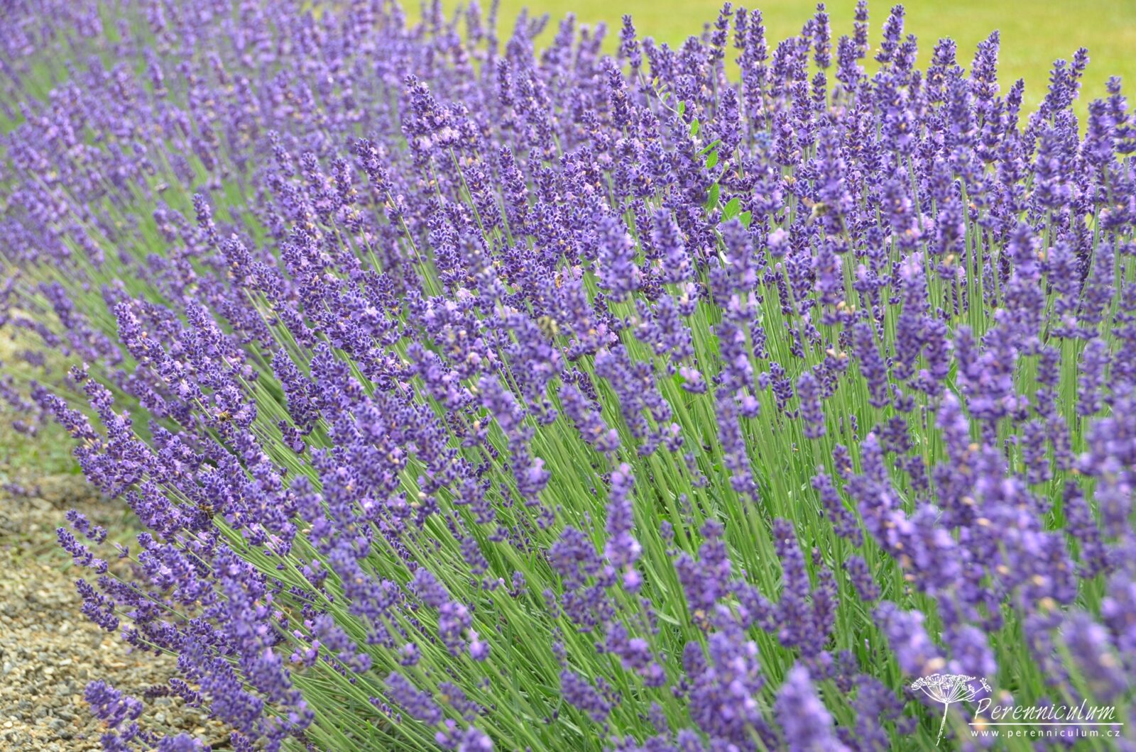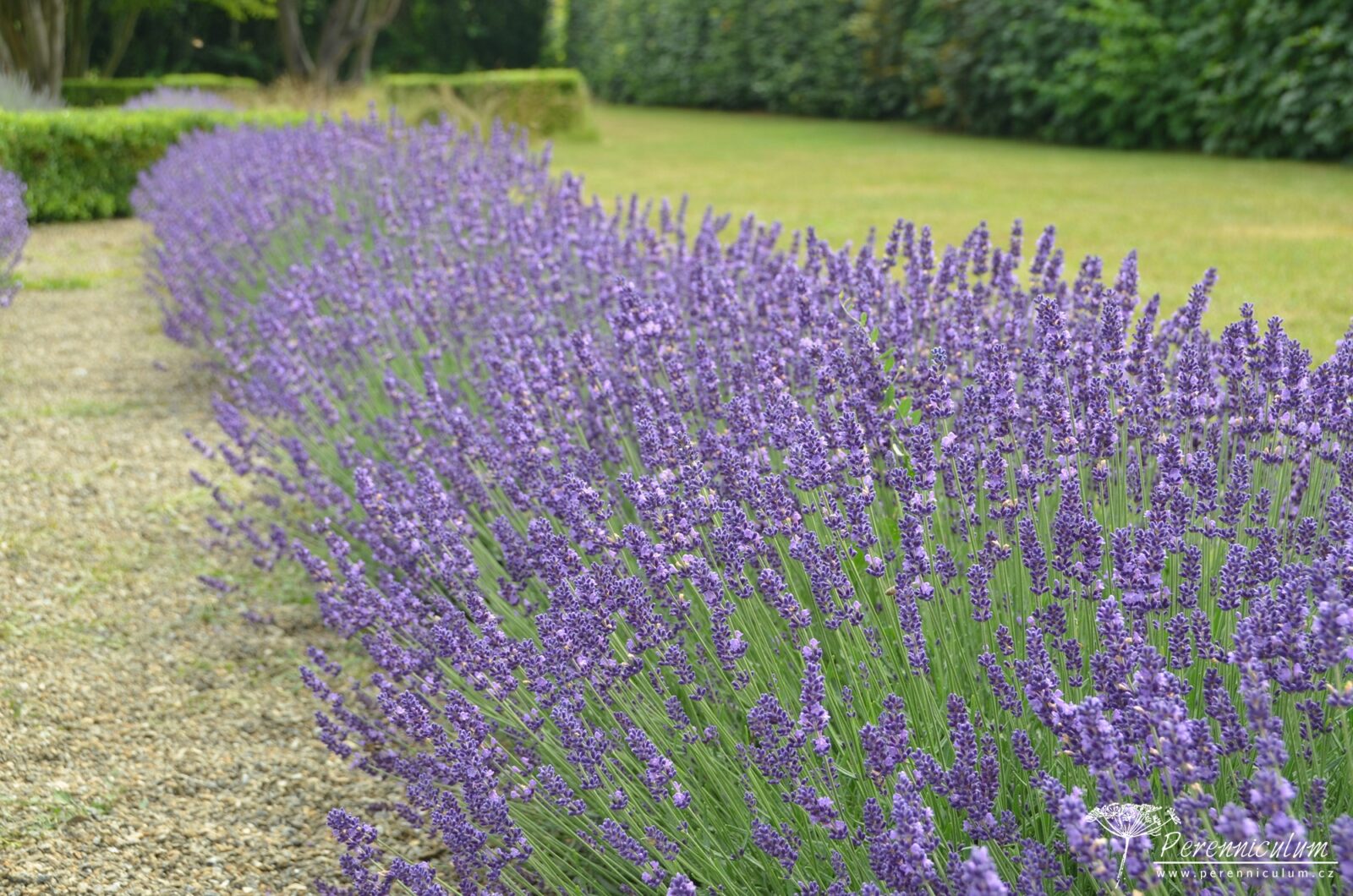 'Hidcote' osvědčený kultivar s velmi tmavými květy, které vyrůstají hustě v 3 až 4 cm dlouhých klasech. Má velmi kompaktní, nízký habitus. Dosahuje výšky jen okolo 35 cm. Kultivar 'Hidcote' introdukoval do kultury Lawrence Johnston, britský zahradní designér a majitel zahrad Hidcote Manor v Anglii a Jardin Serre de la Madone ve Francii, někdy před rokem 1950.