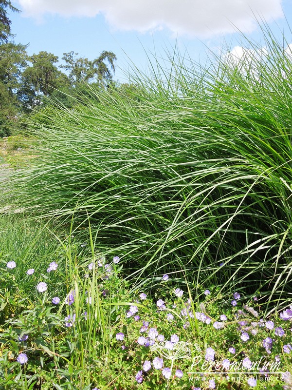 Miscanthus sinensis je domácí trvalkou v Japonsku, na Taiwanu a v Číně. Roste zde v pahorkatinách na slunných svazích, ale i ve vyšších horách. V domovině kvete od srpna do října, ale v našich podmínkách určité kultivary často ani nevykvétají. Vytváří statný trs vzpřímených stonků dosahujících až 2,5 m. Listy mají ploché čepele až 2 cm široké.