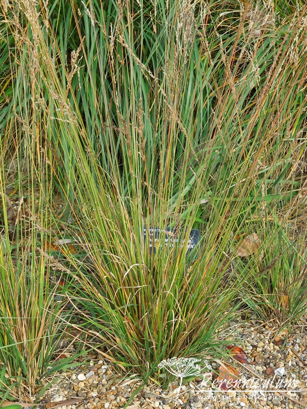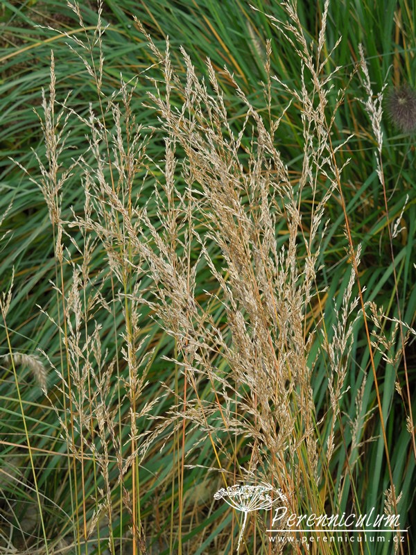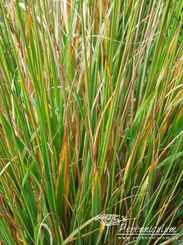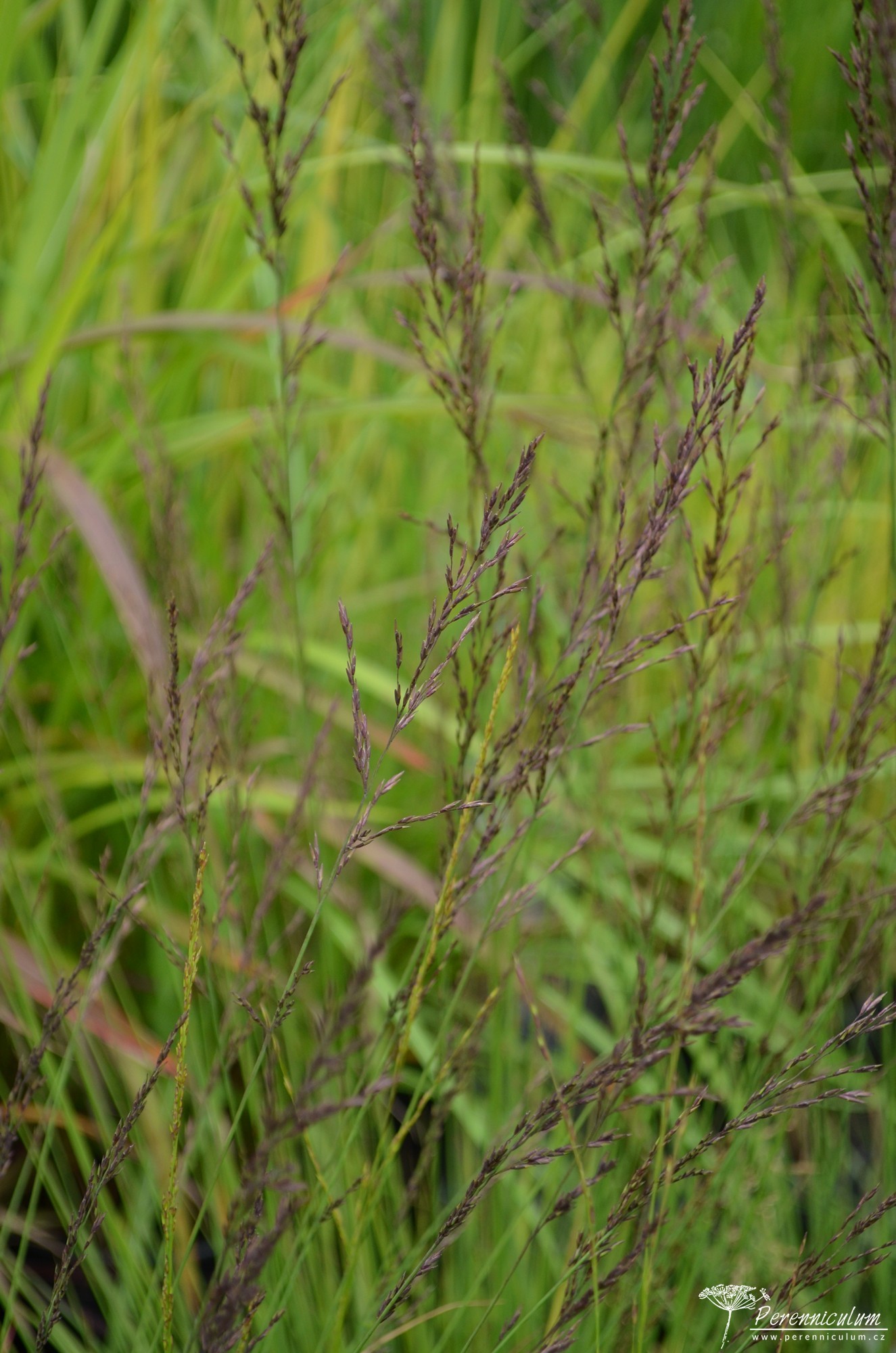 subsp. caerulea má nižší a kompaktnější habitus než druhý poddruh subsp. arundinacea. Obvykle dorůstá méně než 120 cm. V posledních letech botanikové zjistili, že odchylka v habitu pramení spíše ze stanovištních podmínek (subsp. arundinacea roste na vlhčích a živnějších půdách v přírodě), a proto se přestává rozlišování na subspecie používat.