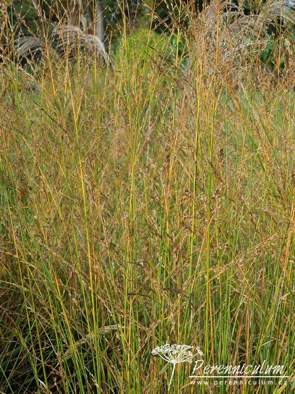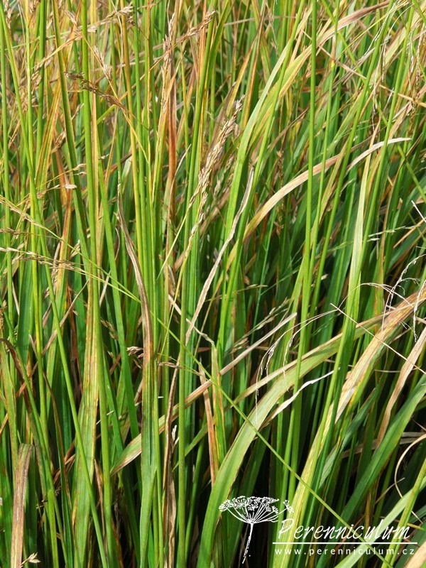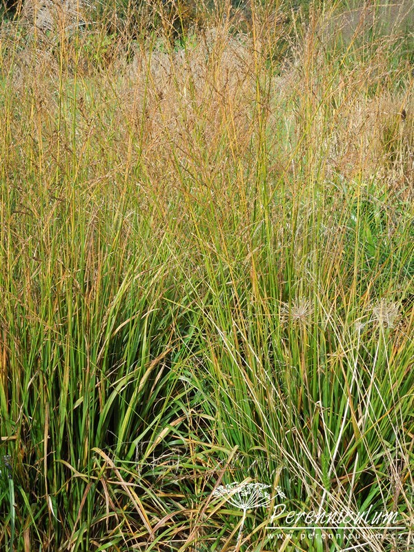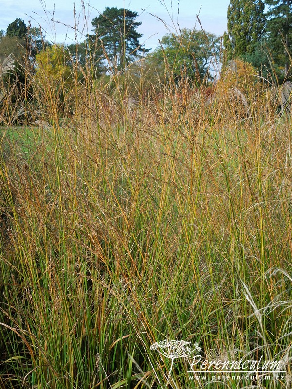 subsp. arundinacea je vyšší a robustnější než druhý poddruh subsp. caerulea. V posledních letech botanikové zjistili, že odchylka v habitu pramení spíše ze stanovištních podmínek - subsp. arundinacea roste na vlhčích a živnějších místech v přírodě, zatímco subsp. caerulea se spíše objevuje na sušších okrajích těchto lokalit, a proto se přestává rozlišování na subspecie používat. Dosahuje výšky až 240 cm.