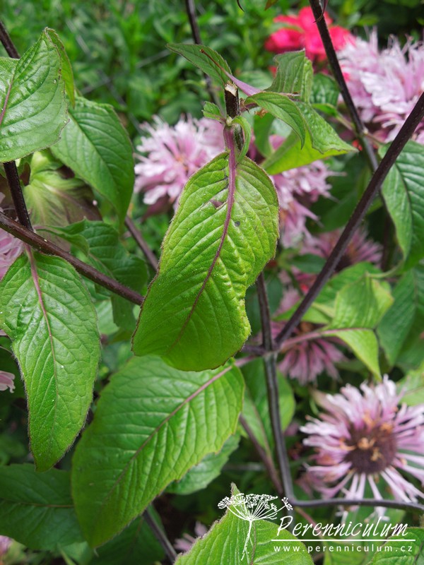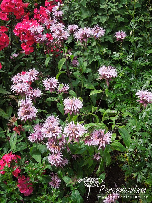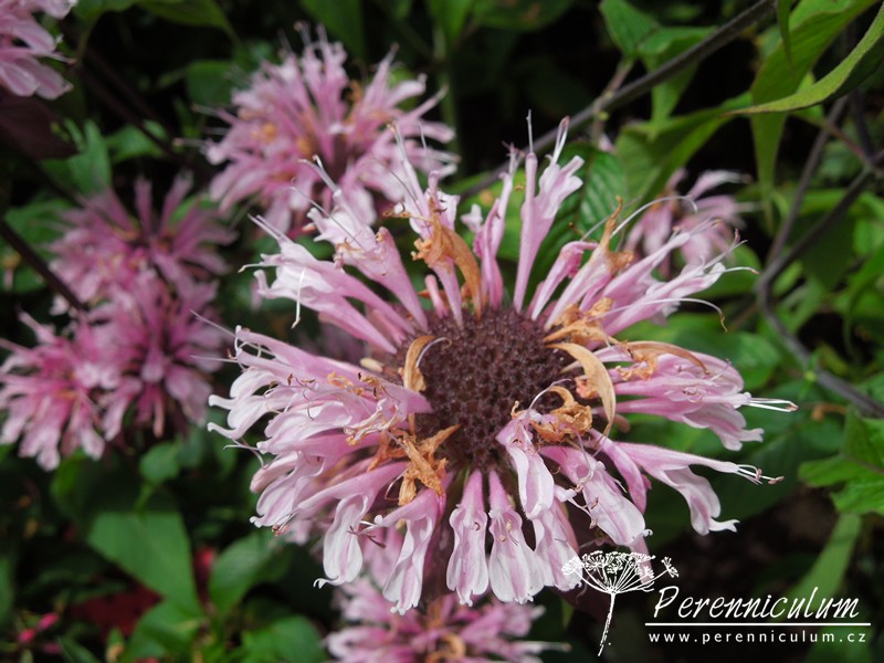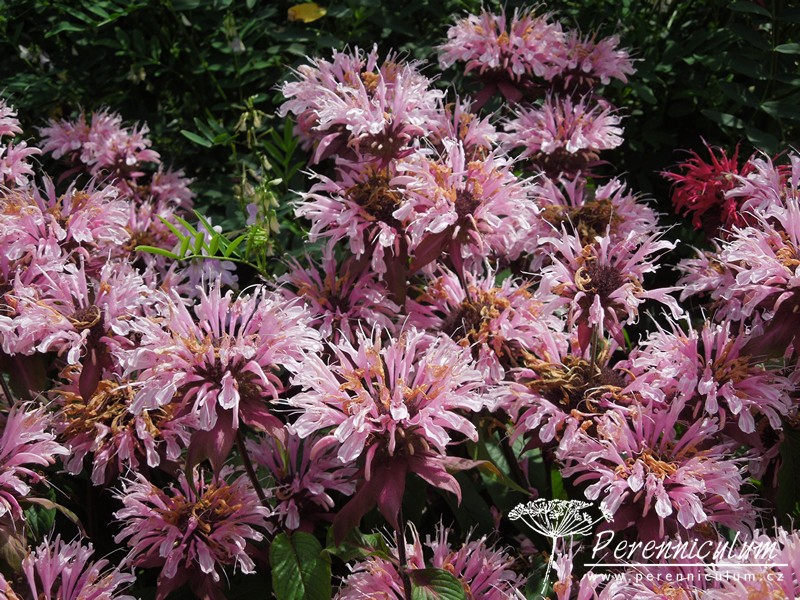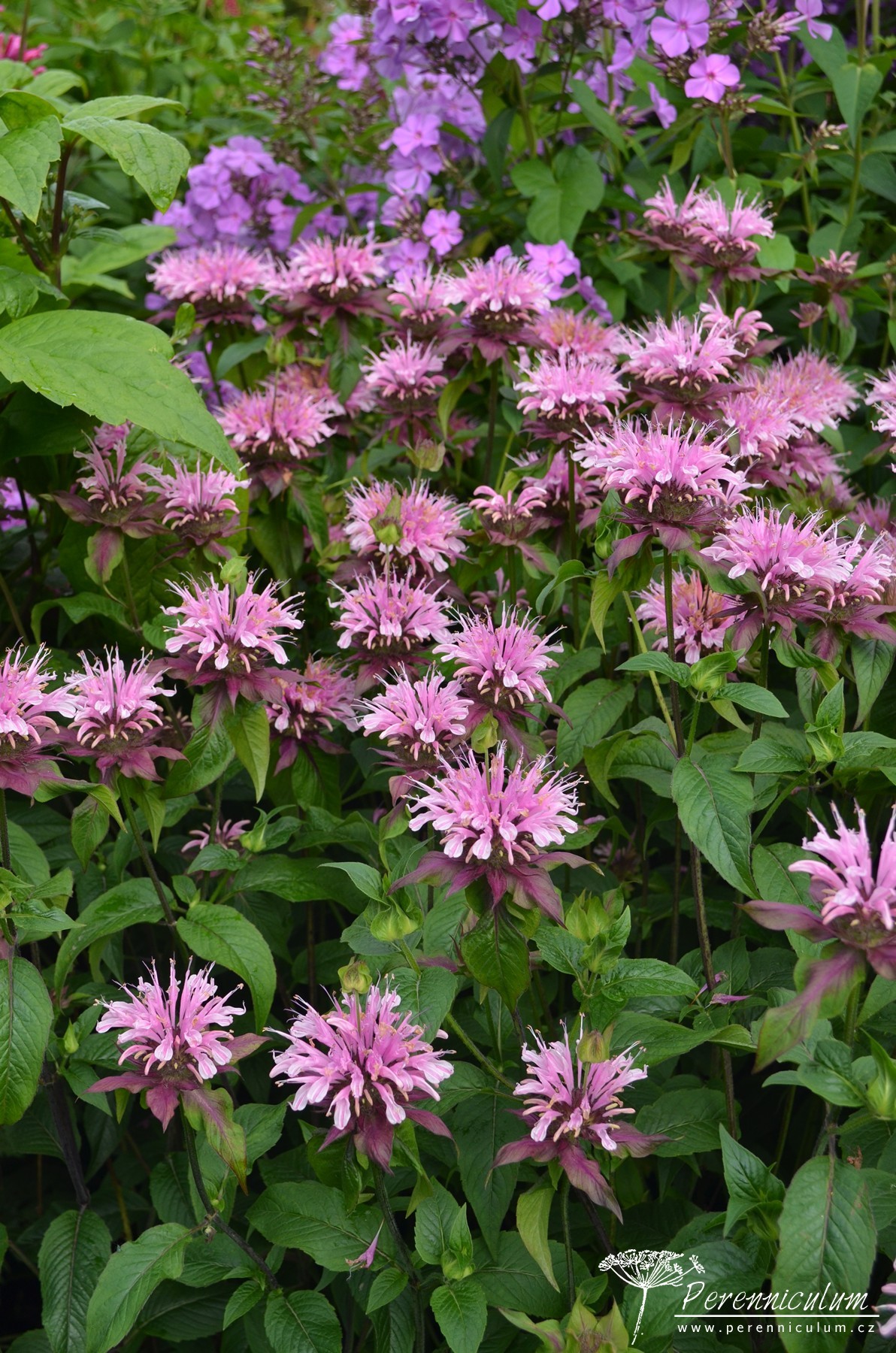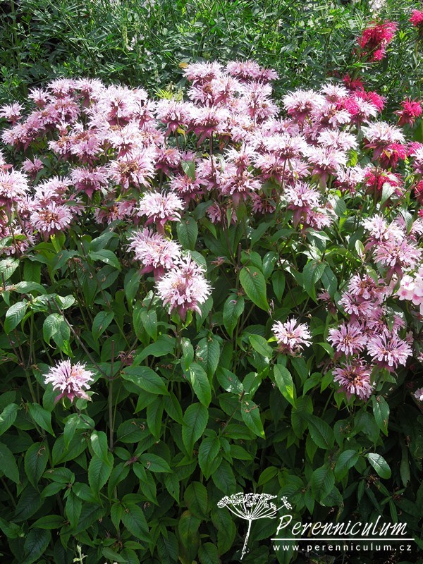 Čtyřhranný, pevný stonek nese vstřícné, aromatické, kopinaté listy se zubatým okrajem. V přírodě dosahují výšky až 1,5 m, zahradní kultivary bývají zpravidla nižší. Rostliny se velmi aktivně rozrůstají podzemními výběžky a střed trsu odumírá, proto Monarda vyžaduje rozdělení a přesazení trsů jednou za 2 až 3 roky. Na vzpřímených stoncích se od července objevují hlávkovitá květenství podepřená purpurově zbarvenými listeny, které dávají vyniknout celému soukvětí. Hlávky vyrůstají na stonku v přeslenech nad sebou a jsou složeny z dvoupyskatých, vonných květů, které působí jako magnet na motýly a opylovače. Hodí se k řezu do vázy.