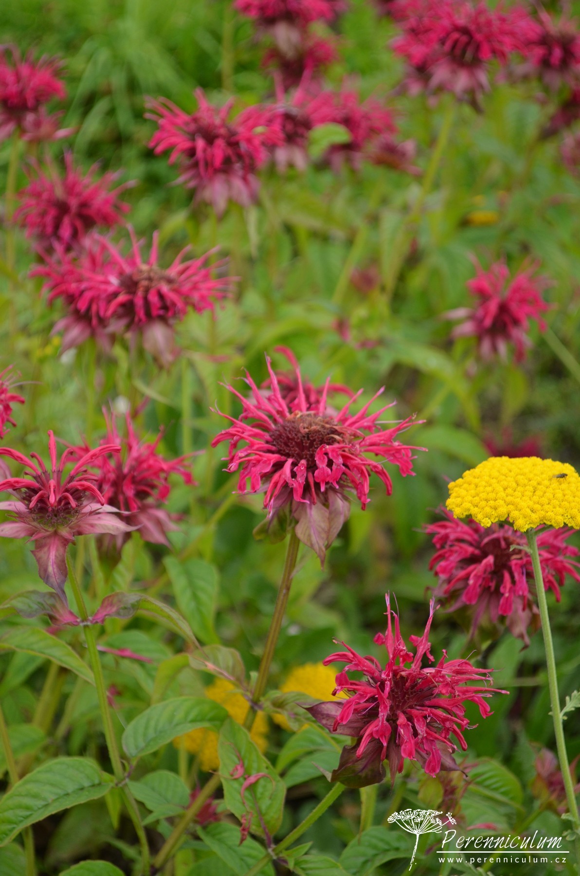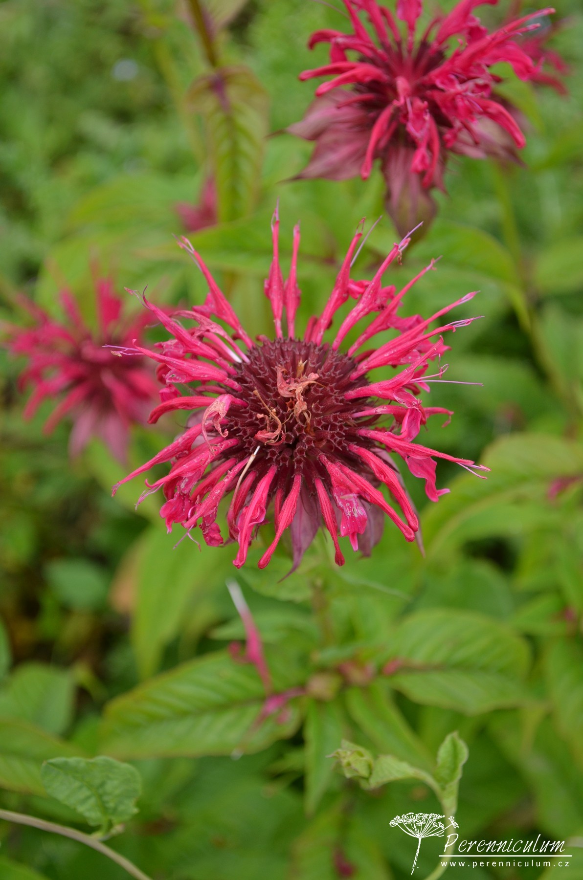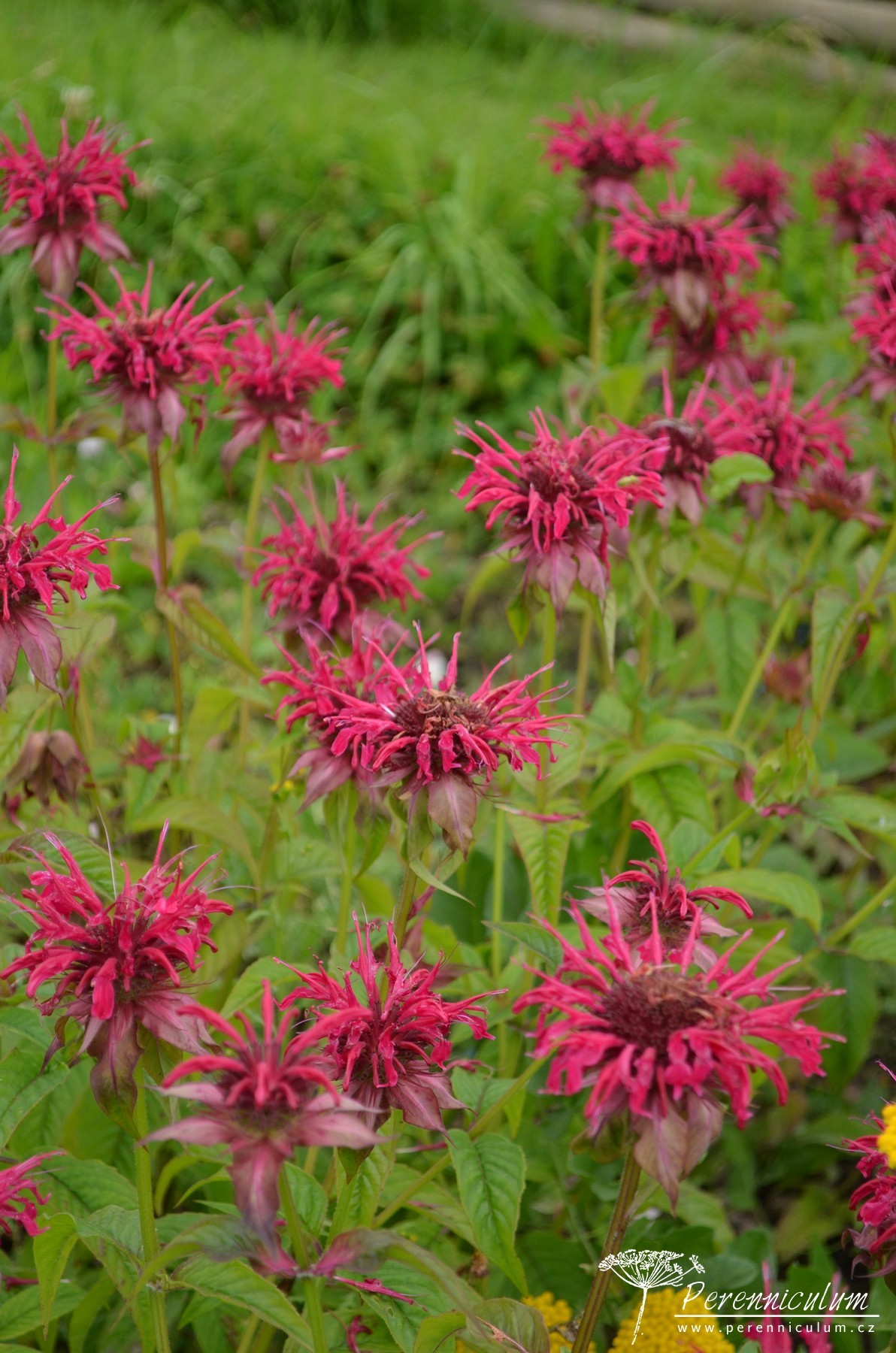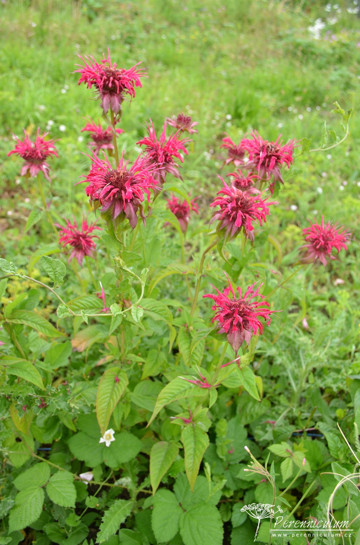 Čtyřhranný, pevný stonek nese vstřícné, aromatické, kopinaté listy se zubatým okrajem. V přírodě dosahují výšky až 1,5 m, zahradní kultivary bývají zpravidla nižší. Rostliny se velmi aktivně rozrůstají podzemními výběžky a střed trsu odumírá, proto Monarda vyžaduje rozdělení a přesazení trsů jednou za 2 až 3 roky. Na vzpřímených stoncích se od července objevují hlávkovitá květenství podepřená purpurově zbarvenými listeny, které dávají vyniknout celému soukvětí. Hlávky vyrůstají na stonku v přeslenech nad sebou a jsou složeny z dvoupyskatých, vonných květů, které působí jako magnet na motýly a opylovače. Hodí se k řezu do vázy.