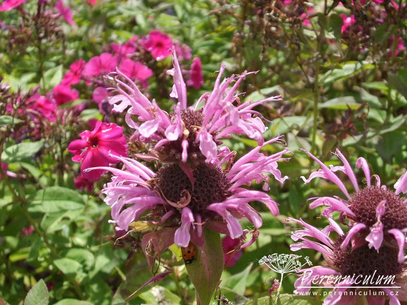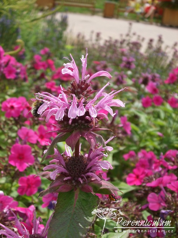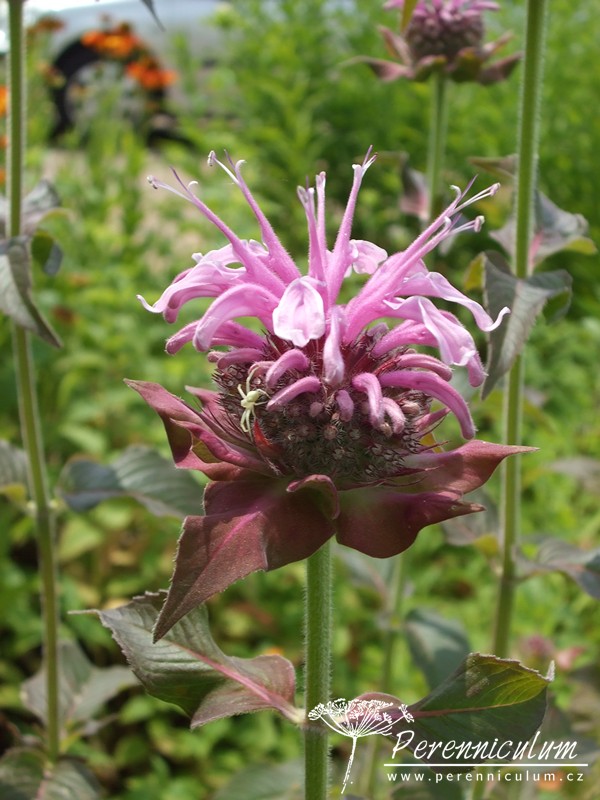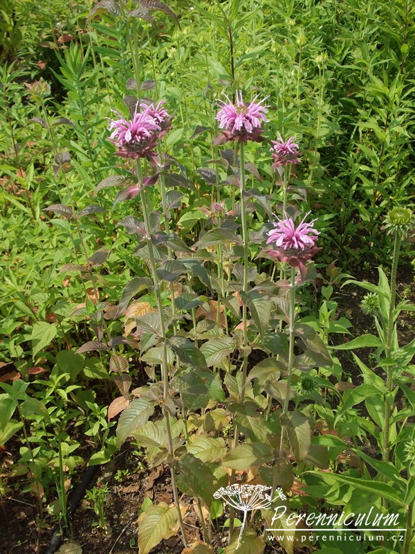Čtyřhranný, pevný stonek nese vstřícné, aromatické, kopinaté listy se zubatým okrajem. V přírodě dosahují výšky až 1,5 m, zahradní kultivary bývají zpravidla nižší. Rostliny se velmi aktivně rozrůstají podzemními výběžky a střed trsu odumírá, proto Monarda vyžaduje rozdělení a přesazení trsů jednou za 2 až 3 roky. Na vzpřímených stoncích se od července objevují hlávkovitá květenství podepřená purpurově zbarvenými listeny, které dávají vyniknout celému soukvětí. Hlávky vyrůstají na stonku v přeslenech nad sebou a jsou složeny z dvoupyskatých, vonných květů, které působí jako magnet na motýly a opylovače. Hodí se k řezu do vázy.