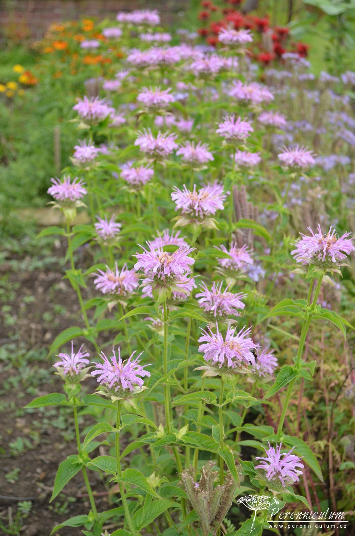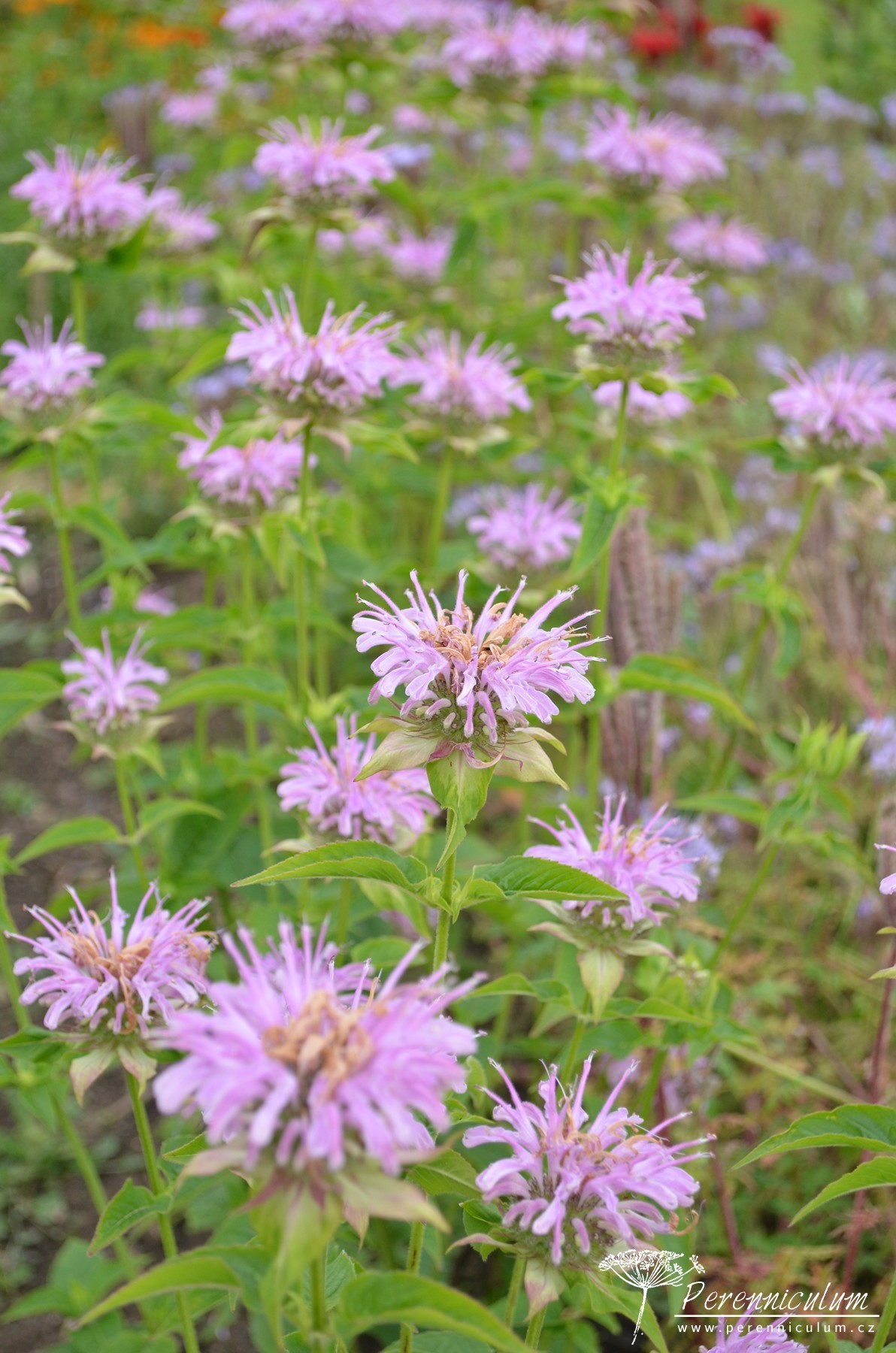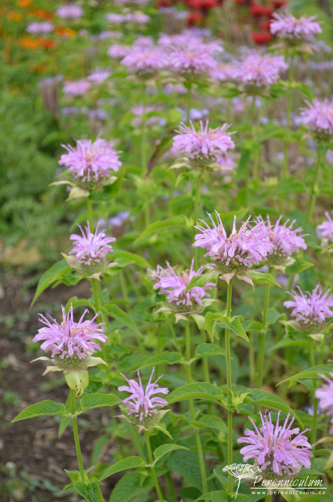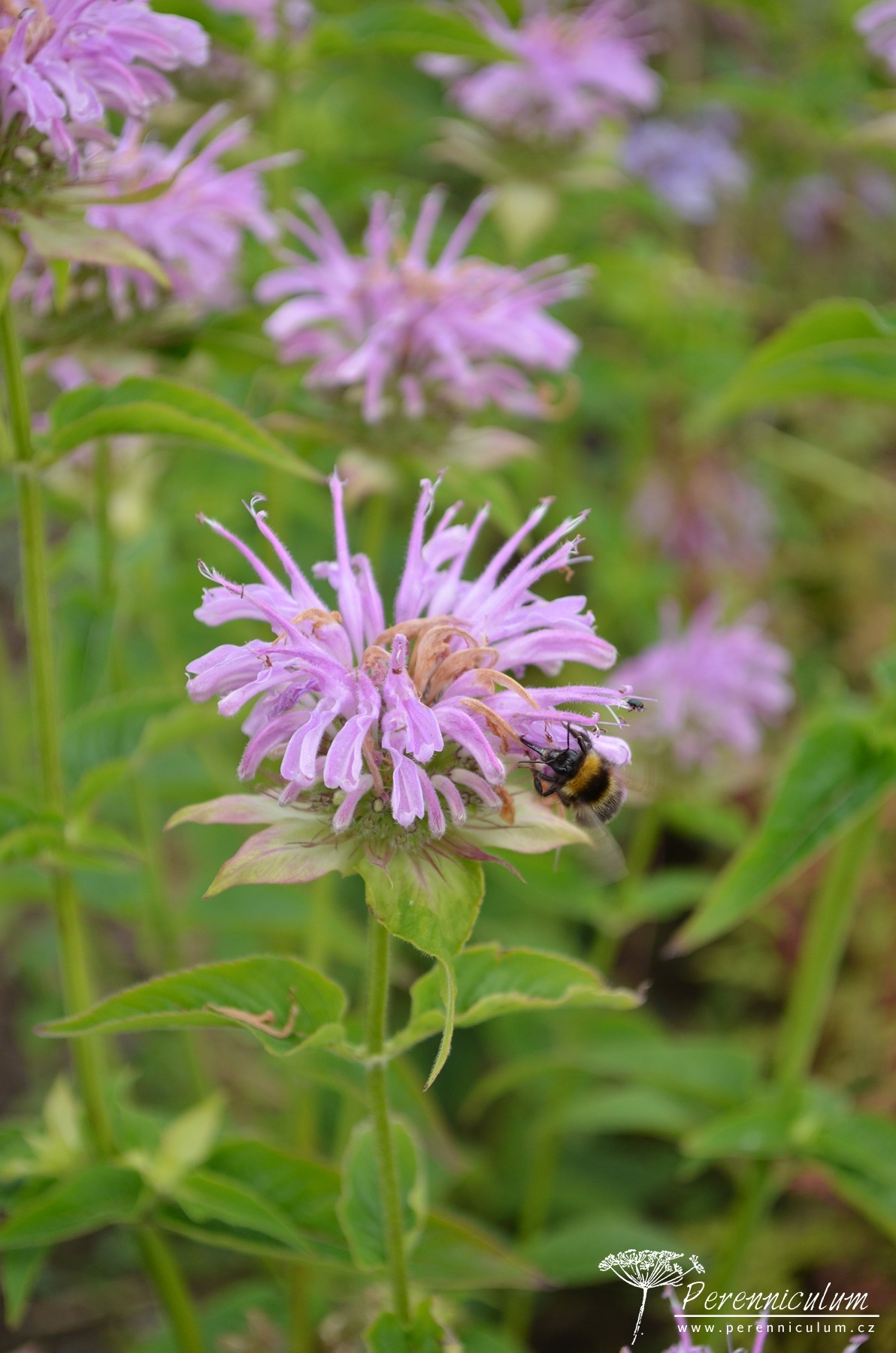 Čtyřhranný, pevný stonek nese vstřícné, aromatické, kopinaté listy se zubatým okrajem. V přírodě dosahují výšky až 1,5 m, zahradní kultivary bývají zpravidla nižší. Rostliny se velmi aktivně rozrůstají podzemními výběžky a střed trsu odumírá, proto Monarda vyžaduje rozdělení a přesazení trsů jednou za 2 až 3 roky. Na vzpřímených stoncích se od července objevují hlávkovitá květenství podepřená purpurově zbarvenými listeny, které dávají vyniknout celému soukvětí. Hlávky vyrůstají na stonku v přeslenech nad sebou a jsou složeny z dvoupyskatých, vonných květů, které působí jako magnet na motýly a opylovače. Hodí se k řezu do vázy.