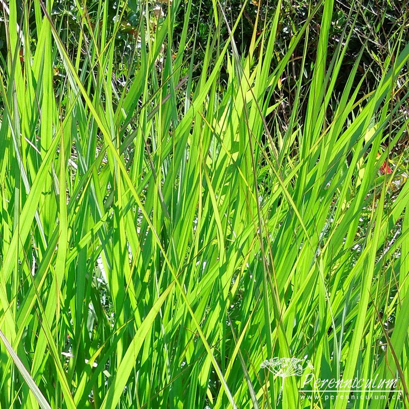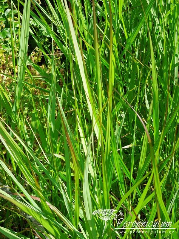 Od konce července se na modrozelených stoncích objevují laty purpurově hnědých kvítků rozkvétajících do bronzově béžové. Rostlina obvykle produkuje velké množství nadýchaných květenství, čímž vytvoří velký průhledný oblak nad trsem listů. U původního druhu se květenství a konce stonků lehce sklání, kultivary jsou však často šlechtěny pro vzpřímený, štíhlý tvar květenství. Špatně kvete v těžkých půdách.