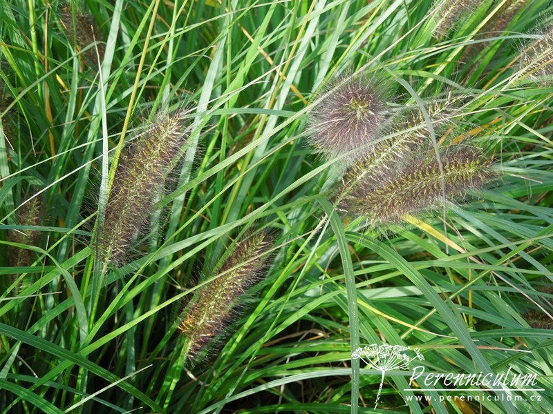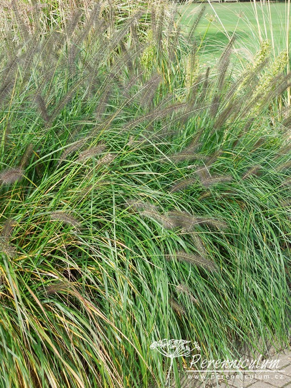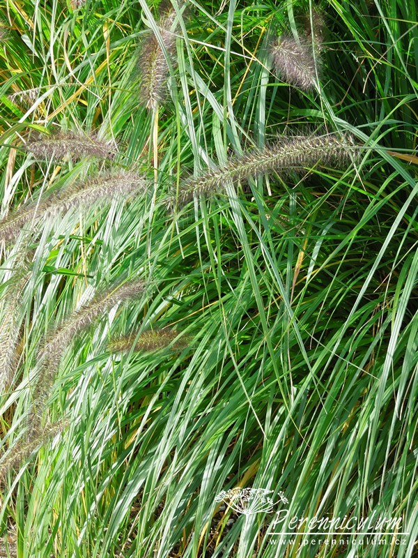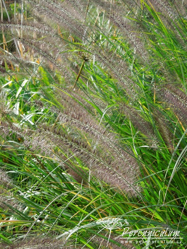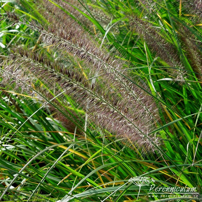 Pennisetum alopecuroides přirozeně roste na slunných stráních, loukách a úhorech v Japonsku a východní Asii od Korei po Filipíny. V domovině dosahují rozkladité trsy obloukovitě se sklánějících listů výšky až 1 metr, zahradní kultivary bývají zpravidla menšího vzrůstu. Úzké (zhruba 1 cm), dlouhé, leskle tmavě zelené listy se zdrsnělým okrajem se na podzim barví do oranžových až červených tónů a přes zimu zůstávají pískově béžové. Od srpna a září vyrůstají mezi listy či těsně nad nimi dlouze osinaté, válcovité lichoklasy, které připomínají štětku na čištění láhví. Raší poměrně pozdě, až ve druhé polovině května.