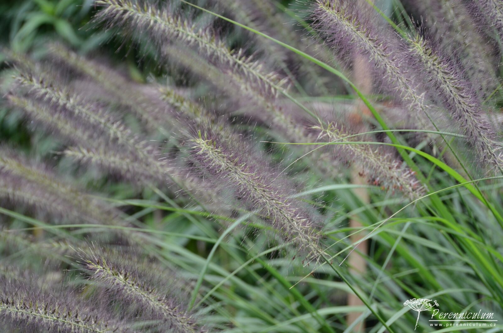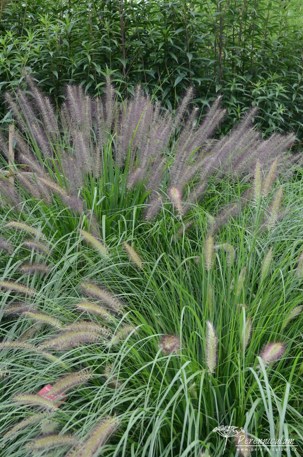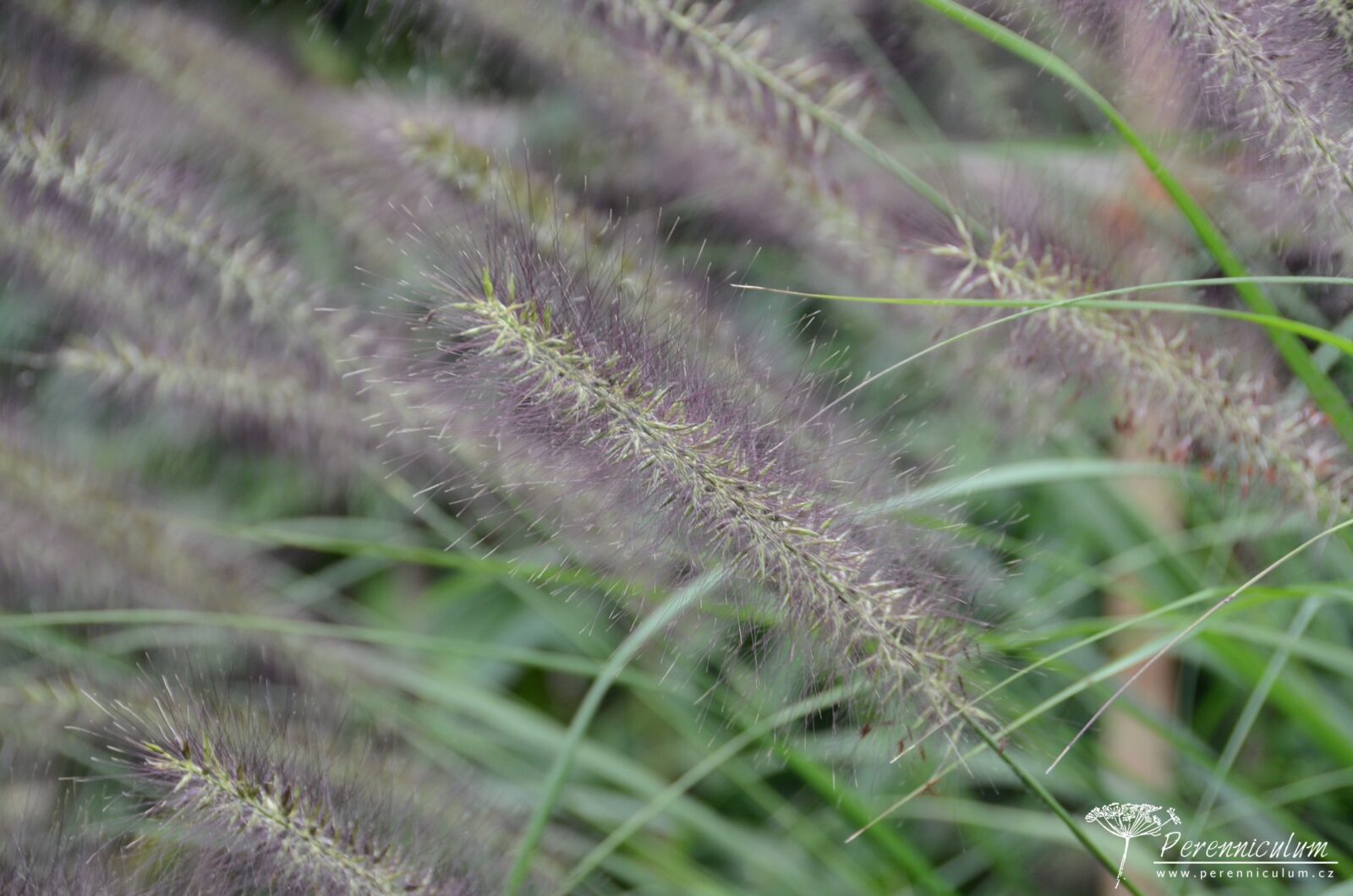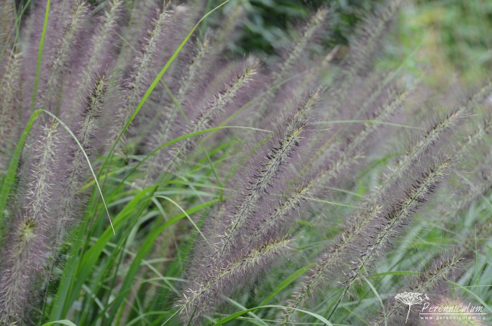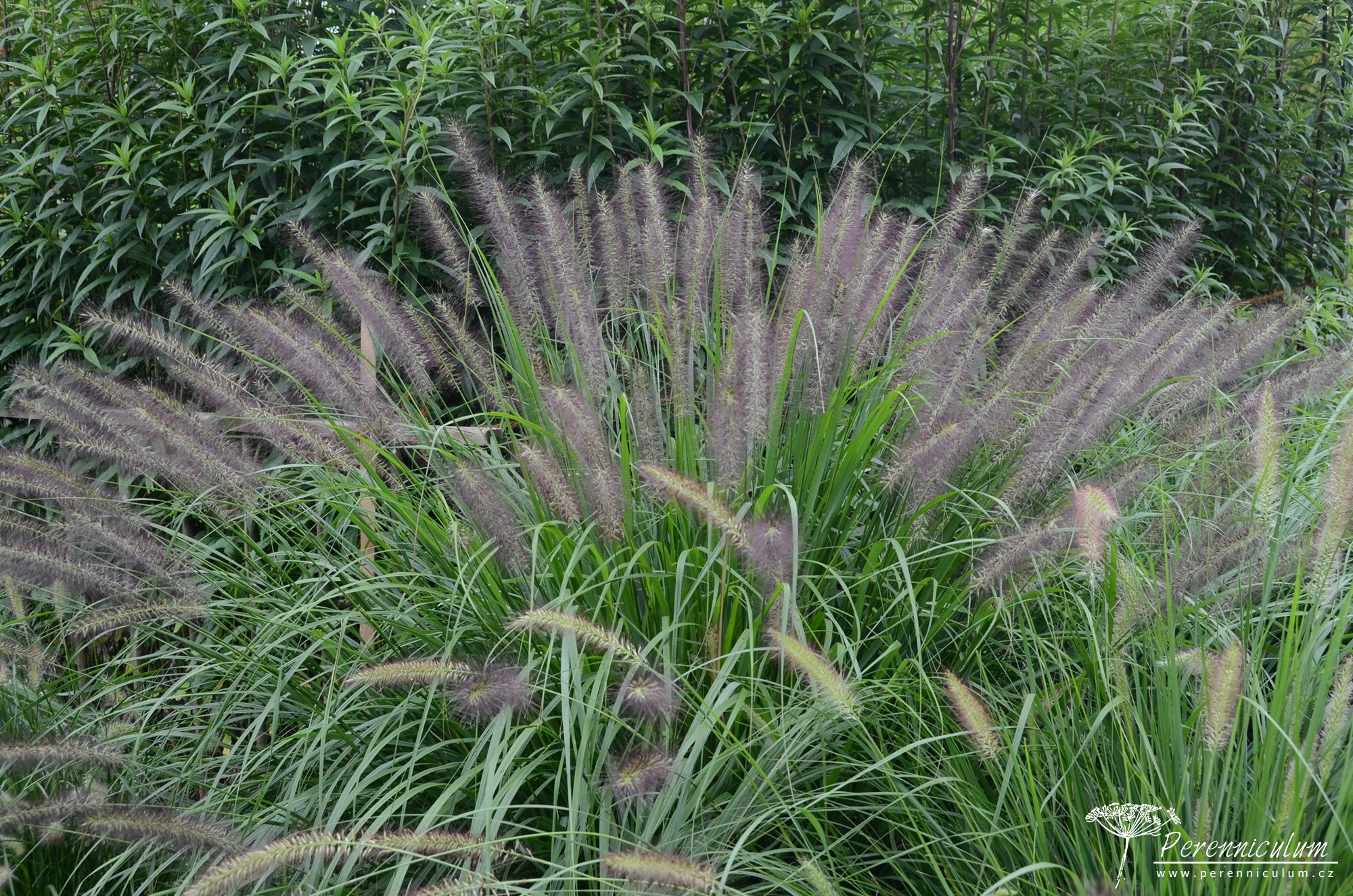 Pennisetum alopecuroides přirozeně roste na slunných stráních, loukách a úhorech v Japonsku a východní Asii od Korei po Filipíny. V domovině dosahují rozkladité trsy obloukovitě se sklánějících listů výšky až 1 metr, zahradní kultivary bývají zpravidla menšího vzrůstu. Úzké (zhruba 1 cm), dlouhé, leskle tmavě zelené listy se zdrsnělým okrajem se na podzim barví do oranžových až červených tónů a přes zimu zůstávají pískově béžové. Od srpna a září vyrůstají mezi listy či těsně nad nimi dlouze osinaté, válcovité lichoklasy, které připomínají štětku na čištění láhví. Raší poměrně pozdě, až ve druhé polovině května.