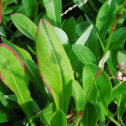 Úzké, kopinaté až elipčité, kožovité listy, které se na podzim barví do rezavě hnědé, vytváří hustý porost široký až 1 metr. V průběhu léta rozkvétají na přímých stoncích úzká, klasovitá, až 7 cm dlouhá, světle růžová květenství, která postupně s odkvétáním přebarvují až do karmínově červené. Stonky dosahují výšky až 25 cm.