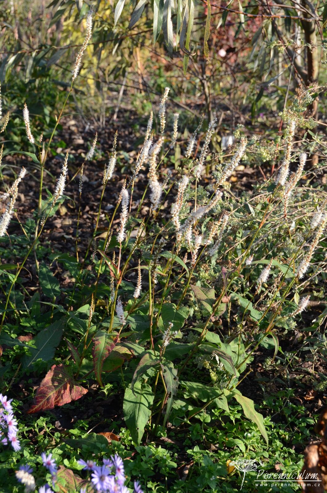 Persicaria amplexicaulis se daří na svěžích až vlhčích půdách na slunci i v polostínu. Může chvíli trvat než se adaptuje na daném stanovišti, ale poté se vitálně (ne však invazivně) rozrůstá. Často se vysévá. Výborně se hodí zejména do pozadí či střední partie perenového rabata. Oddenky zejména mladých rostlin mohou být náchylné k namrznutí, proto je vhodné přikrýt je na zimu chvojím či listím.