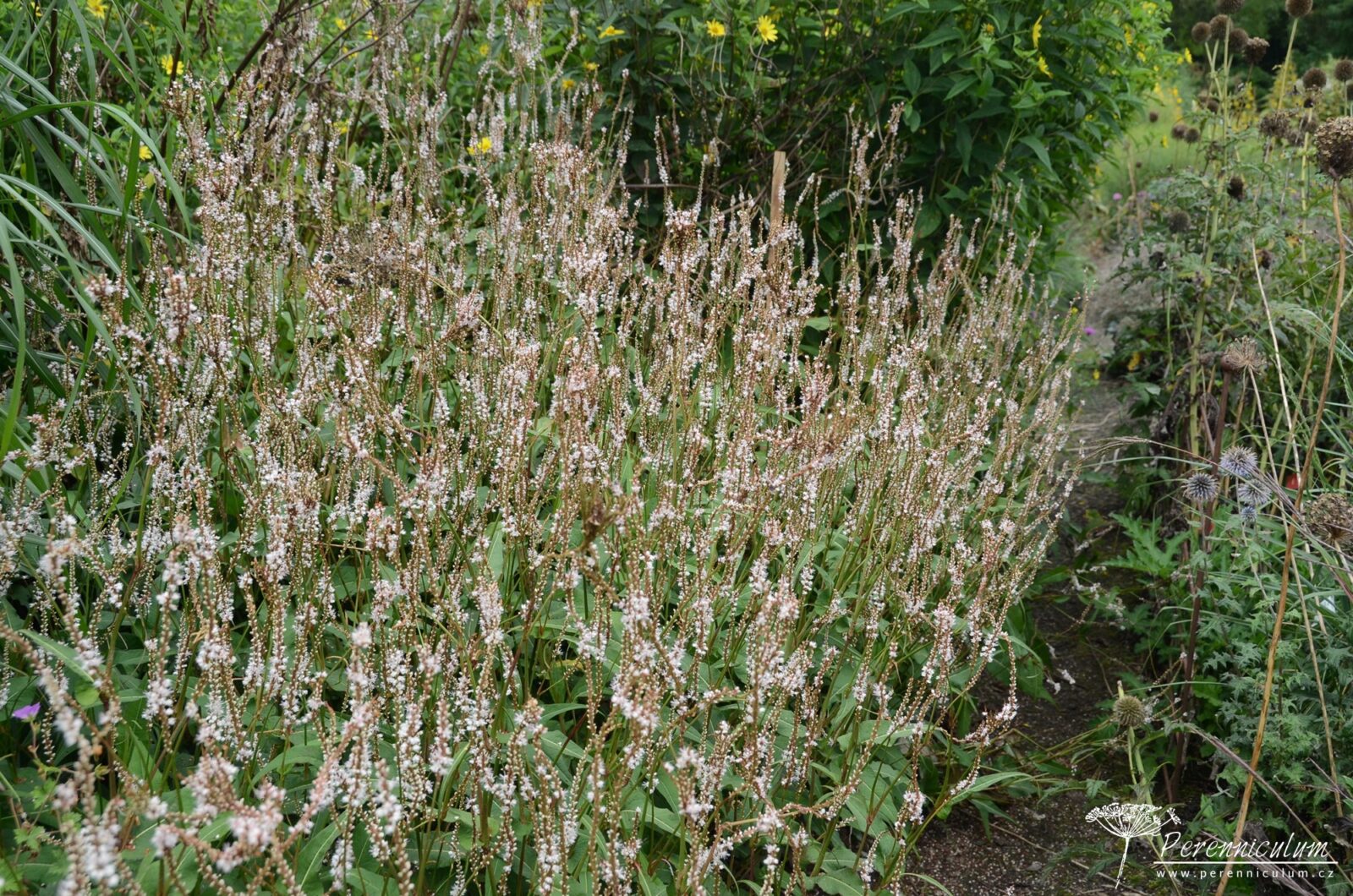 'Alba' je bíle kvetoucí kultivar dosahující přes jeden metr výšky. Štíhlá bílá květenství produkuje od poloviny léta prakticky až do zámrazu.