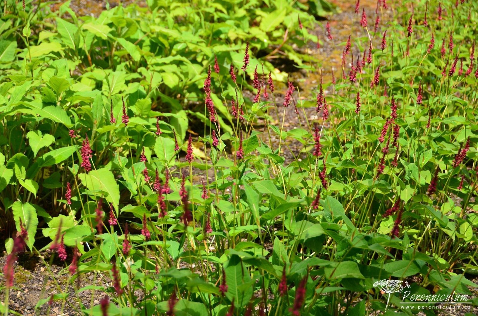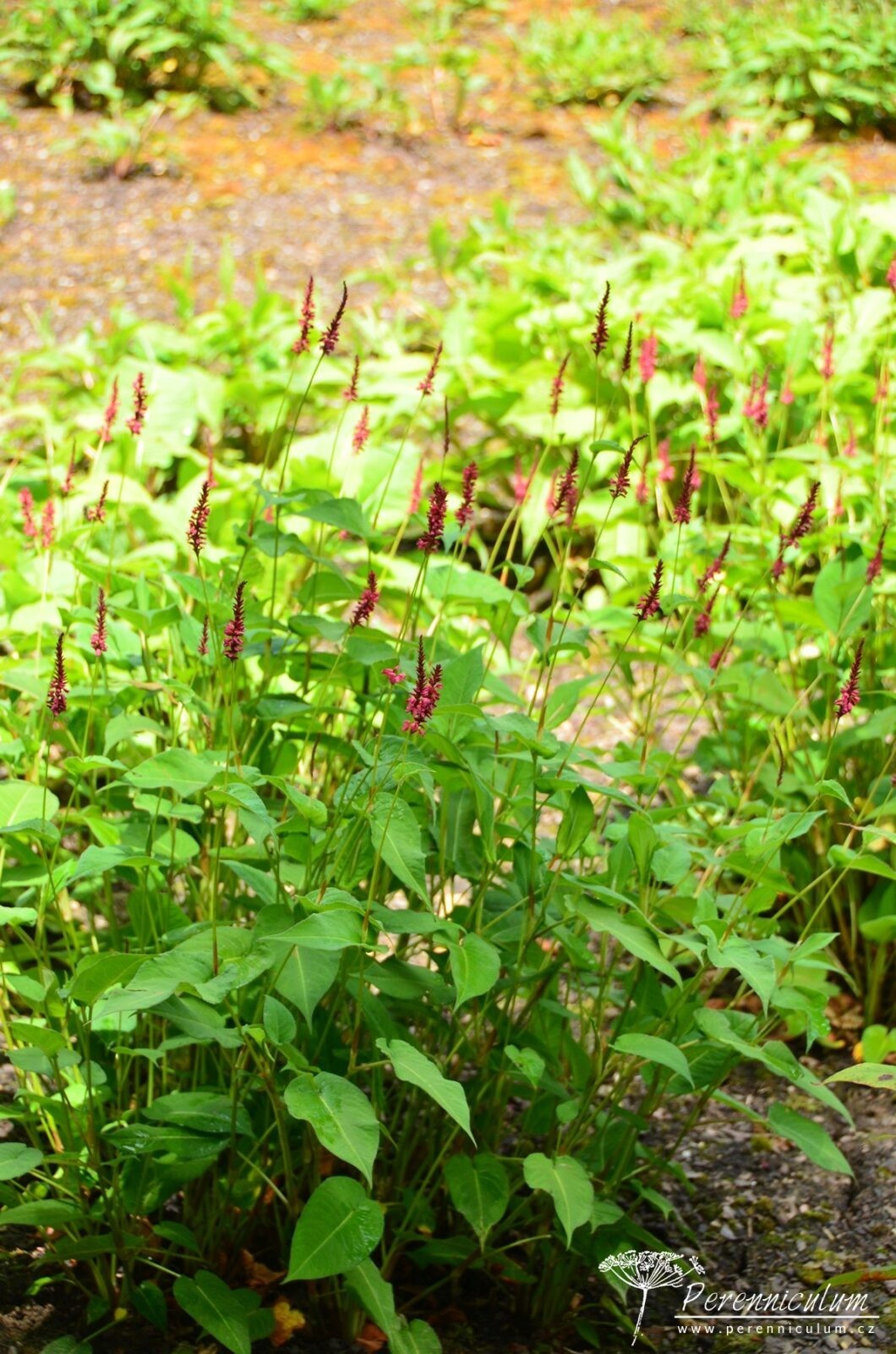 Persicaria amplexicaulis se daří na svěžích až vlhčích půdách na slunci i v polostínu. Může chvíli trvat než se adaptuje na daném stanovišti, ale poté se vitálně (ne však invazivně) rozrůstá. Často se vysévá. Výborně se hodí zejména do pozadí či střední partie perenového rabata. Oddenky zejména mladých rostlin mohou být náchylné k namrznutí, proto je vhodné přikrýt je na zimu chvojím či listím.